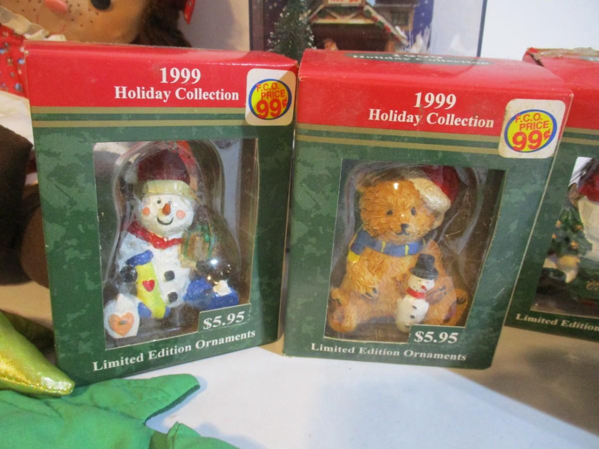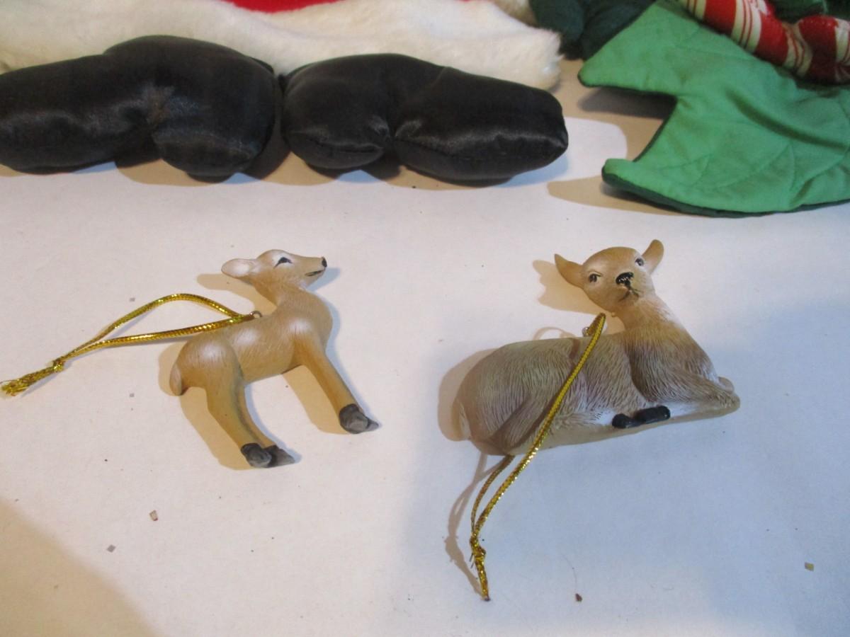 There are 15 + deer ornaments, the blue box does have a damaged foot. Please bring boxes & wrapping paper