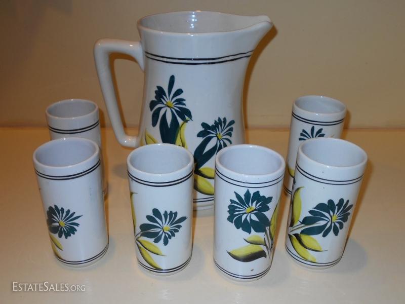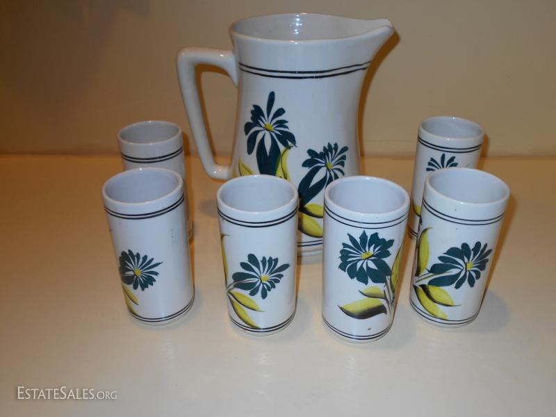 Lemonade Pitcher and Glass Set needs cleaning. Unknown maker