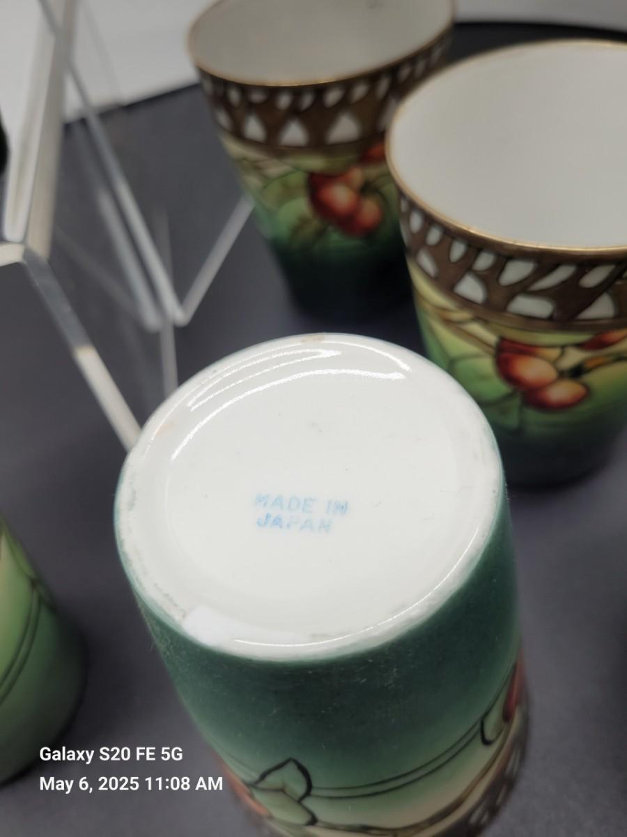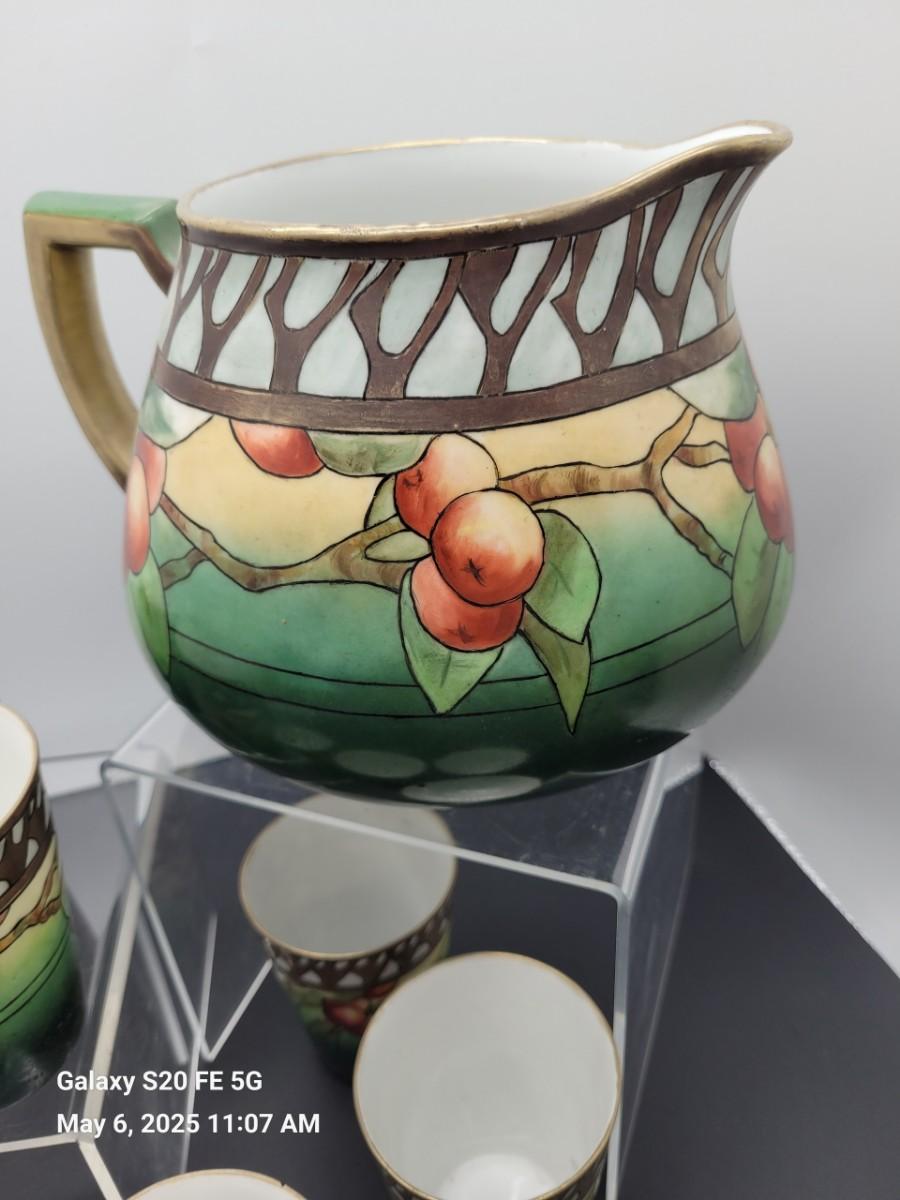 Porcelain pitcher and 8 glasses, handpainted