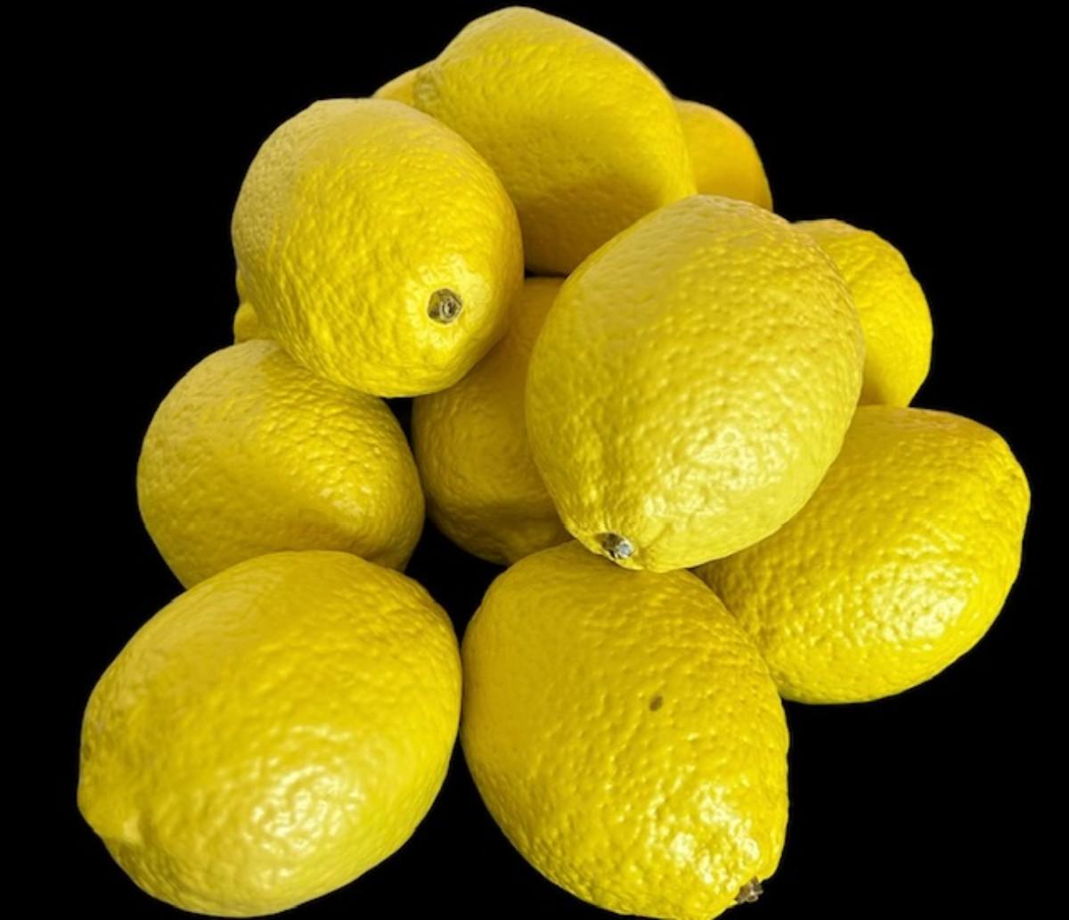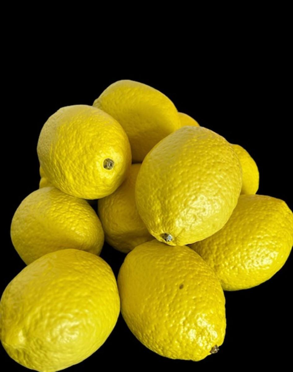 Set of 12 realistic looking faux lemons. Hard sided solid material with natural looking texture. Possibly from Ballard Design. Excellent condition.