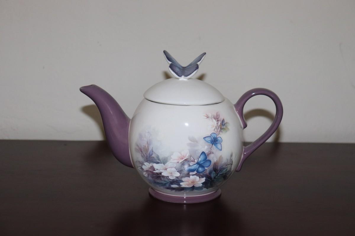 Lena Lici Blossoms and Butterflies Lilac 7.5" Porcelain Teapot French Country