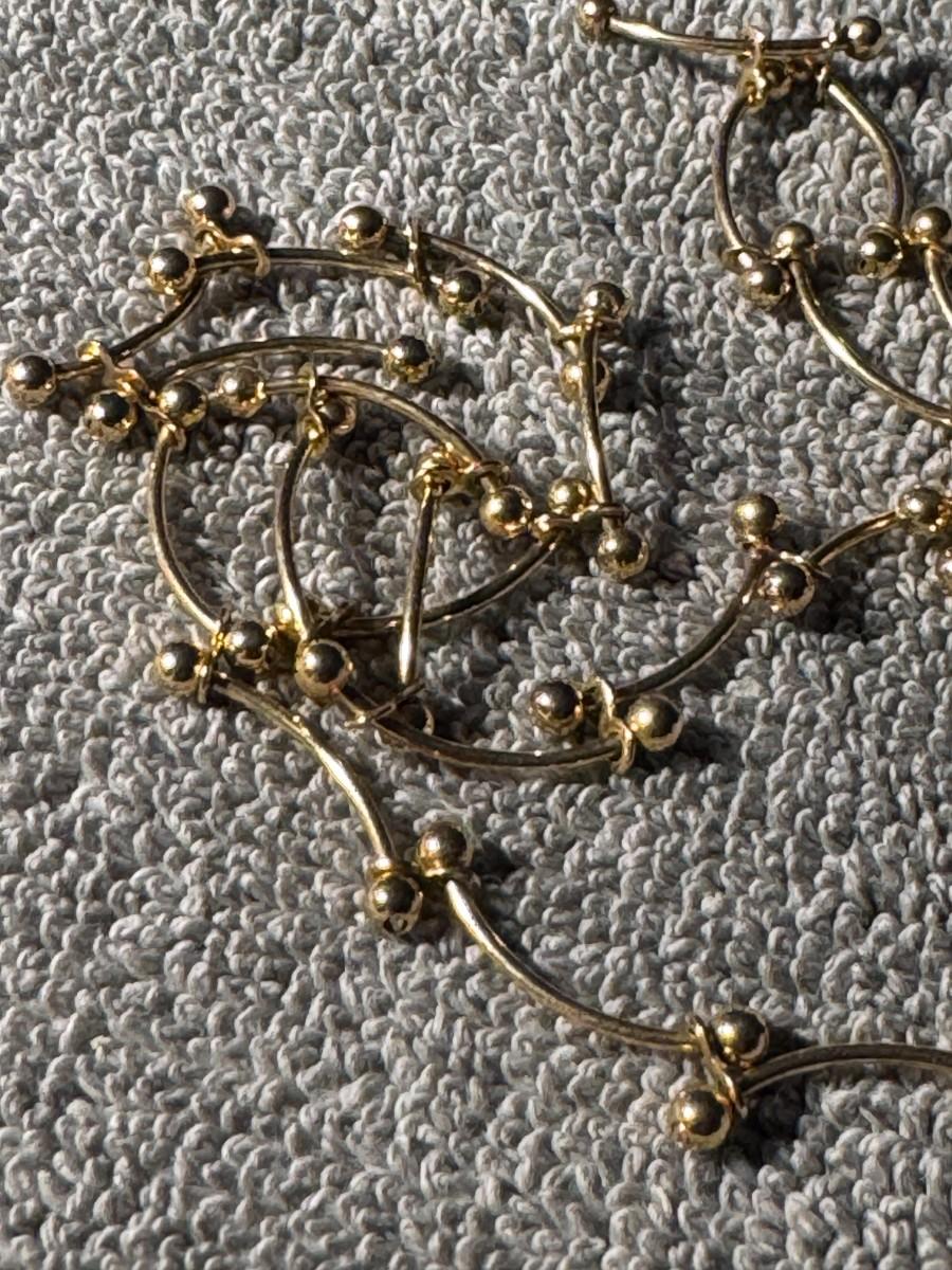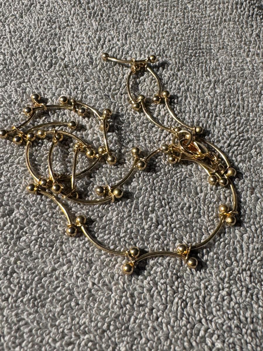 Design: It features a distinctive design with curved links accented by small balls or "bubbles" on the ends, often forming a panel-like choker or bracele