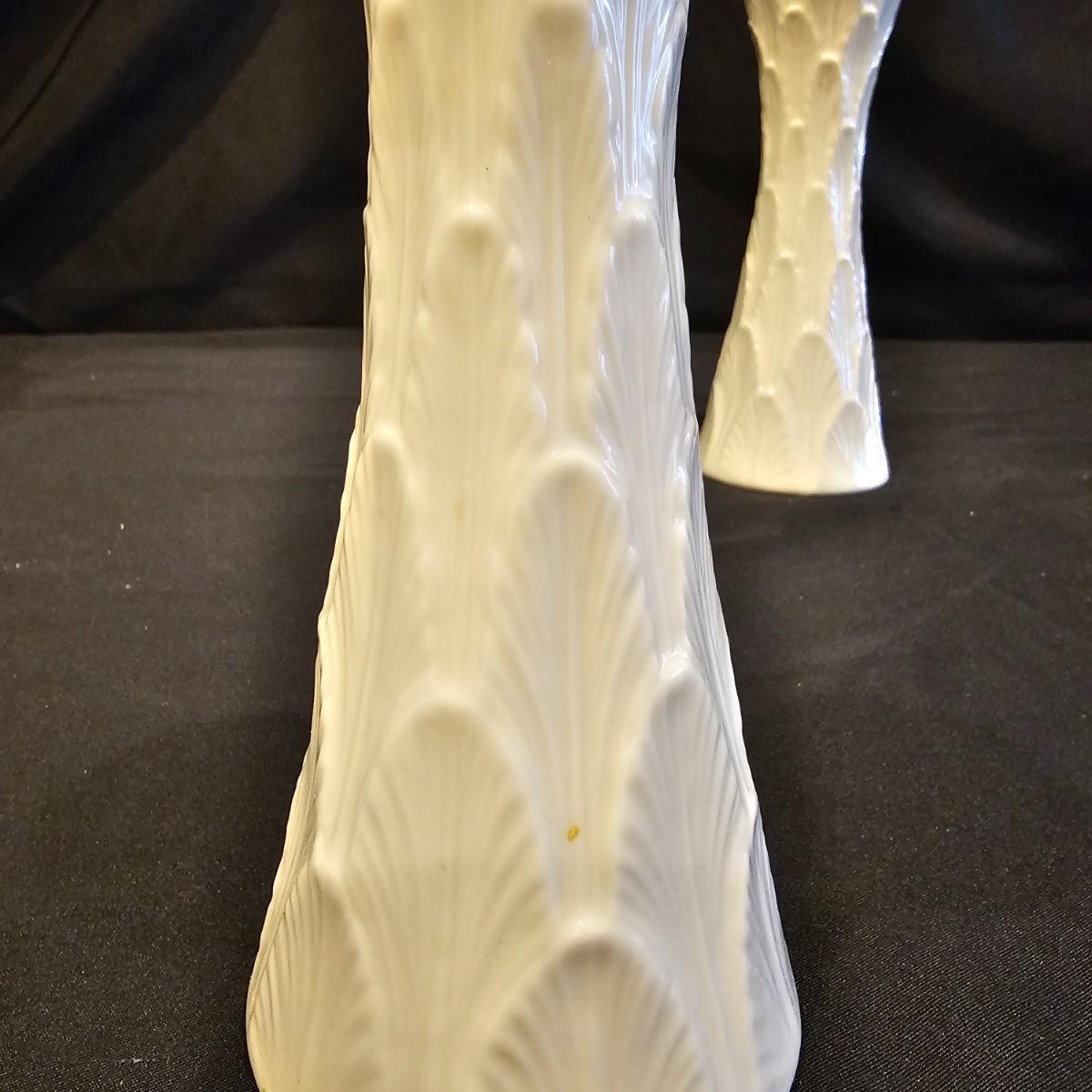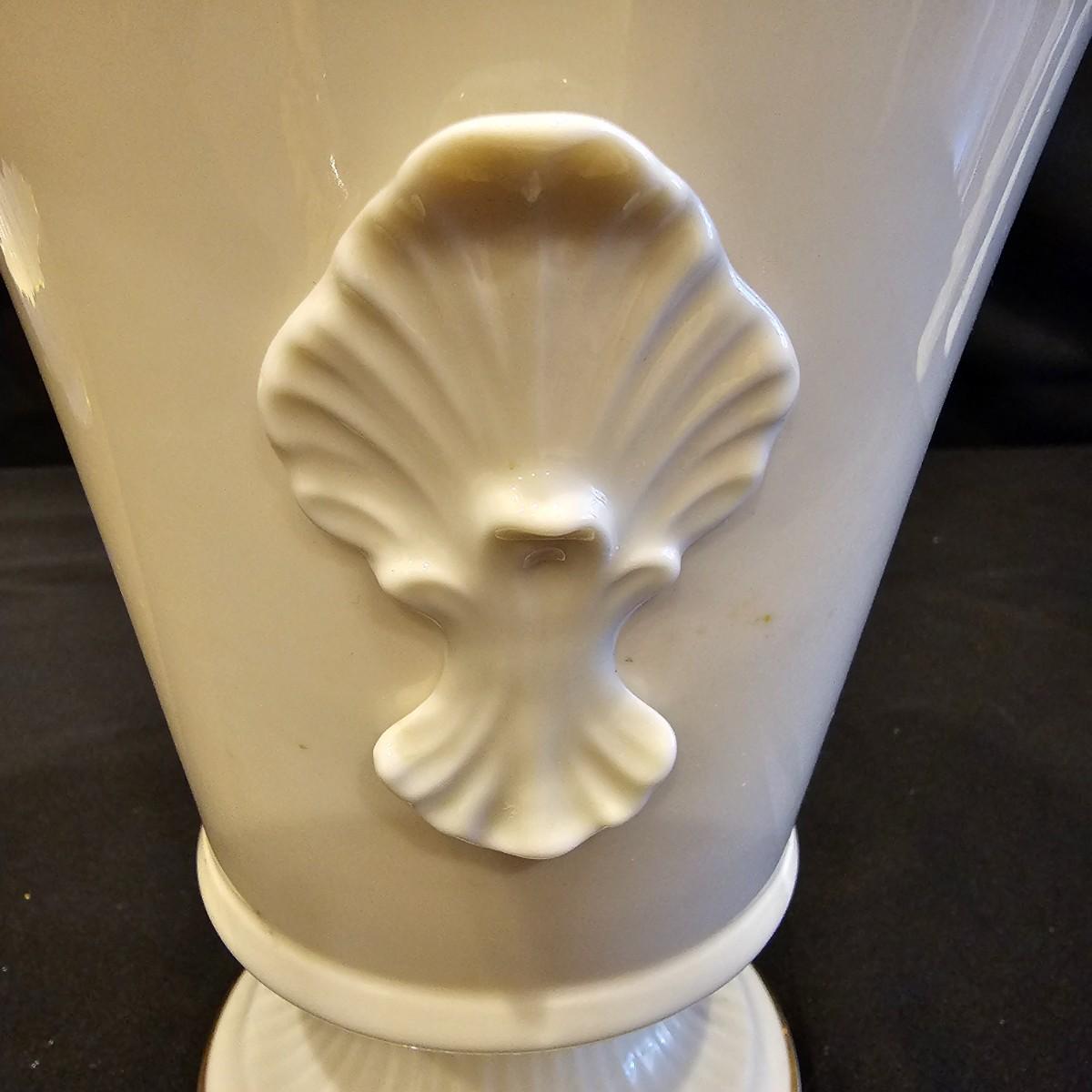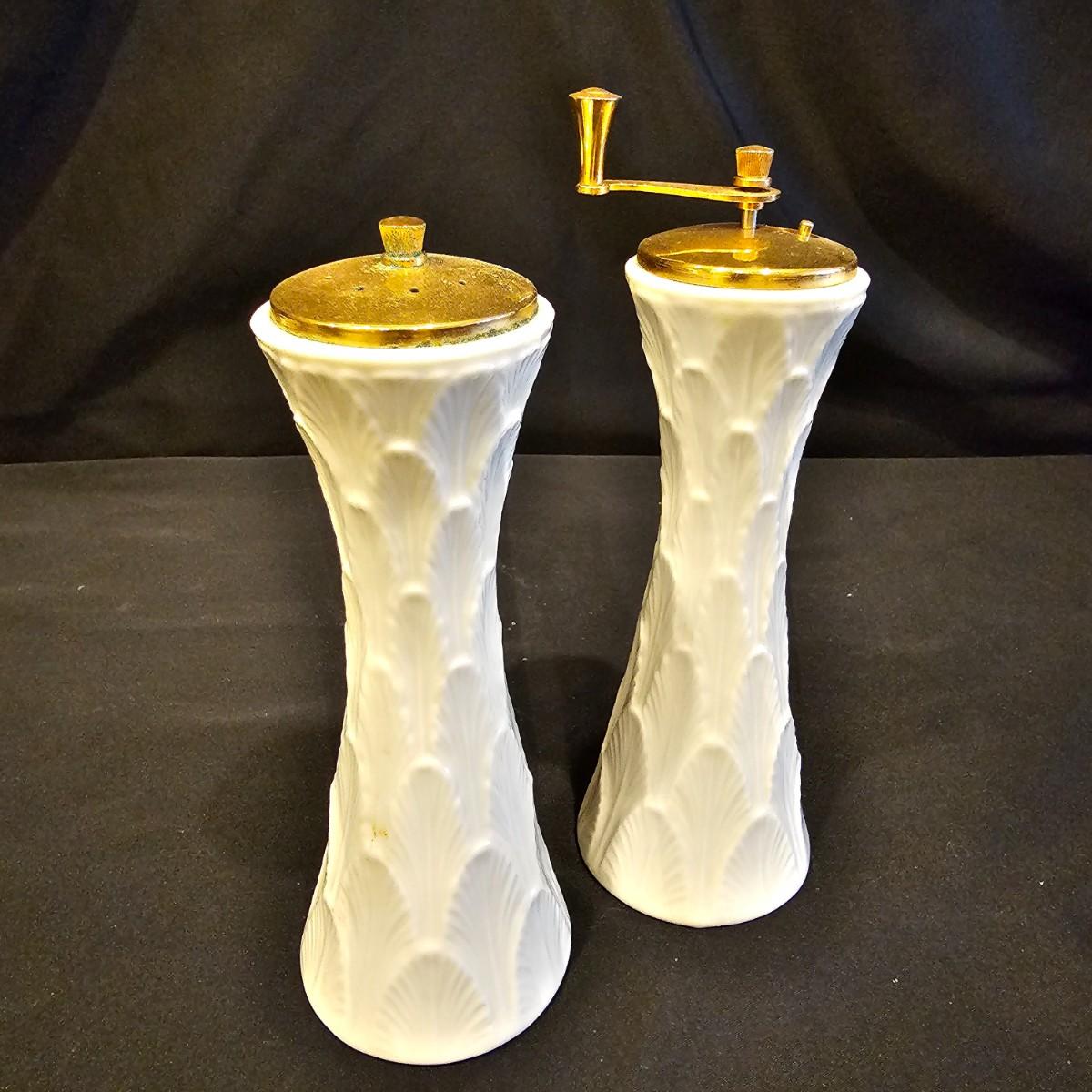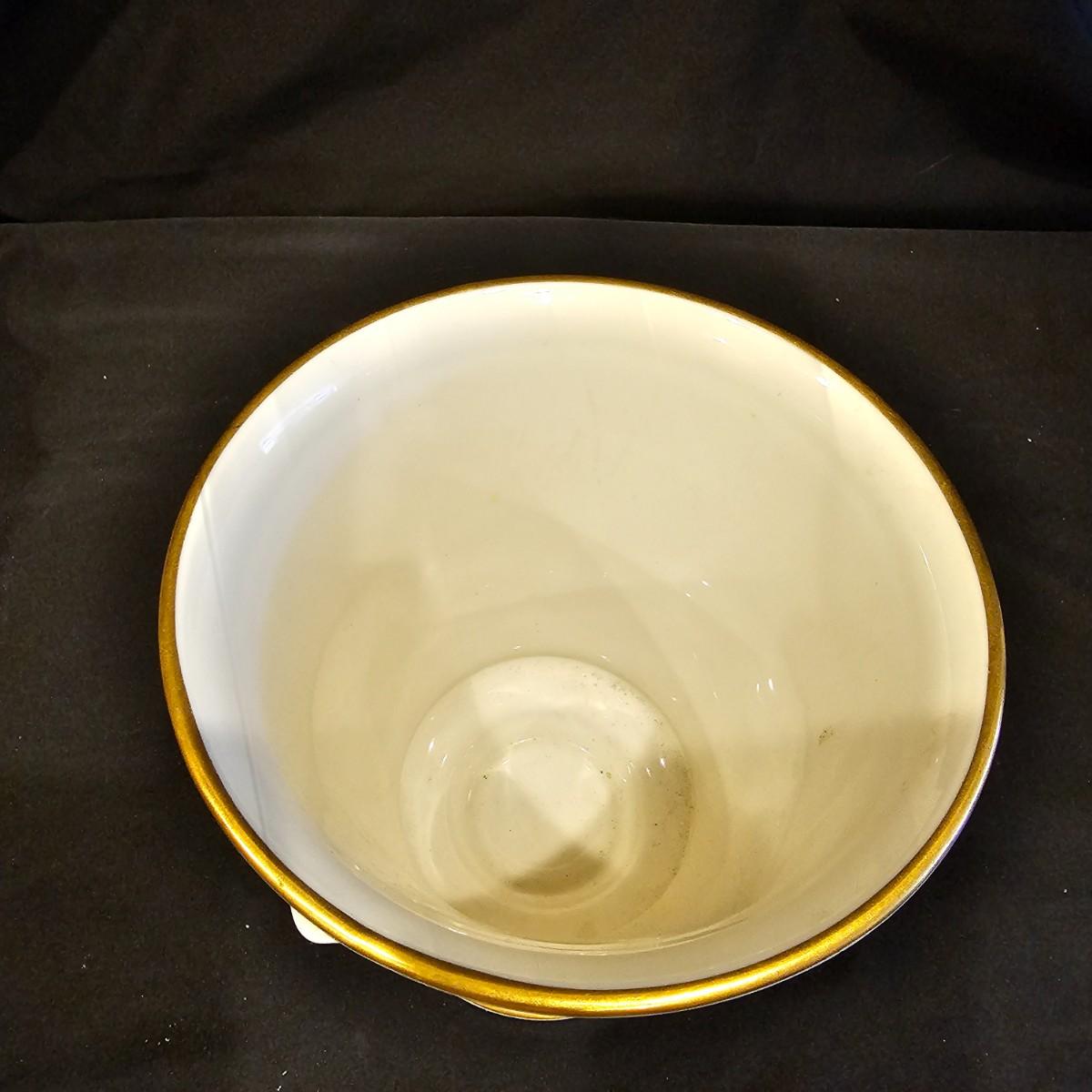 Four pieces of Lenox china with gold rimmed edges. One oval bowl, measures 7" x 11" x 3"H. Vase with medallions on sides is 6"D x 7"H. Salt shaker & pepper mill are 2.75"D x 8"H. See photos for details. Shipping available.