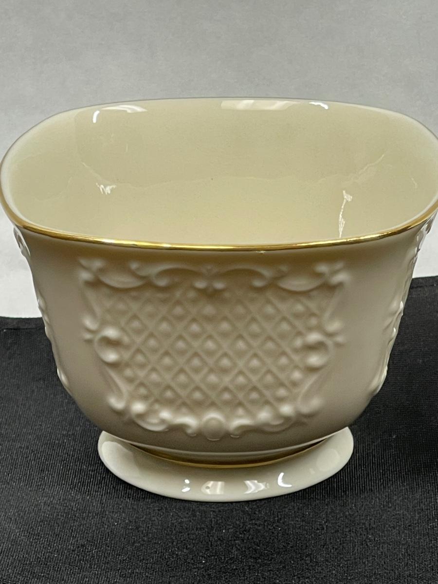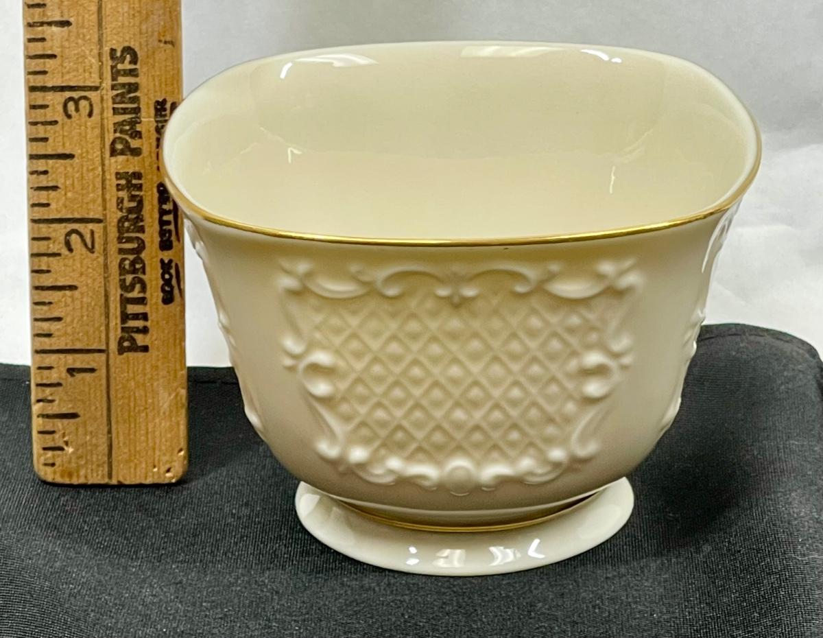 Vintage Lenox CANTERBURY Square Bowl Pedestal Ivory & Gold