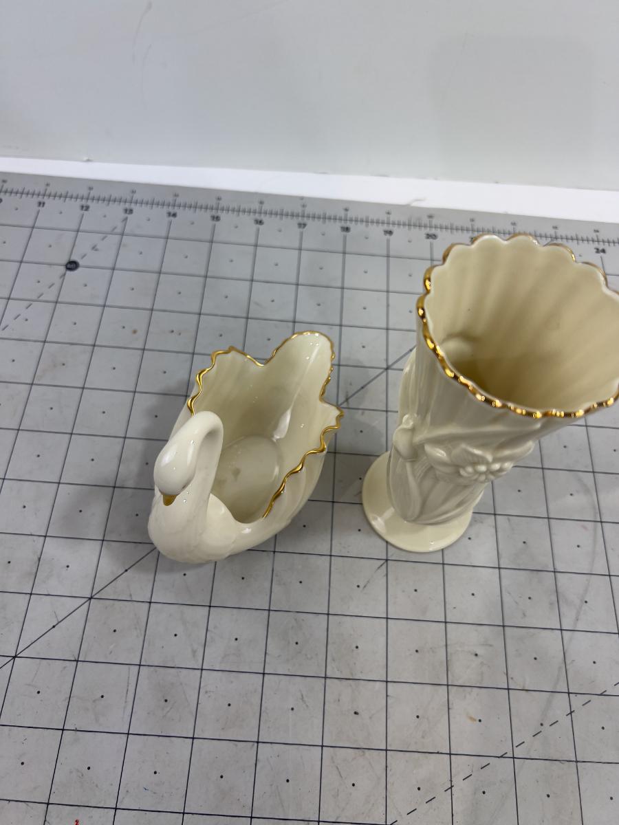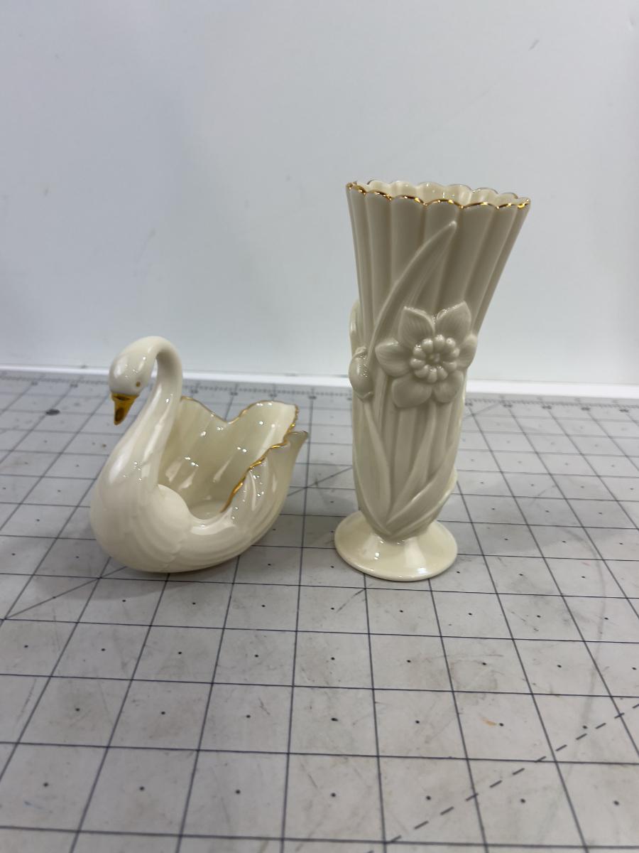 LENOX 24k Gold Rimmed Swan and Vase, Small