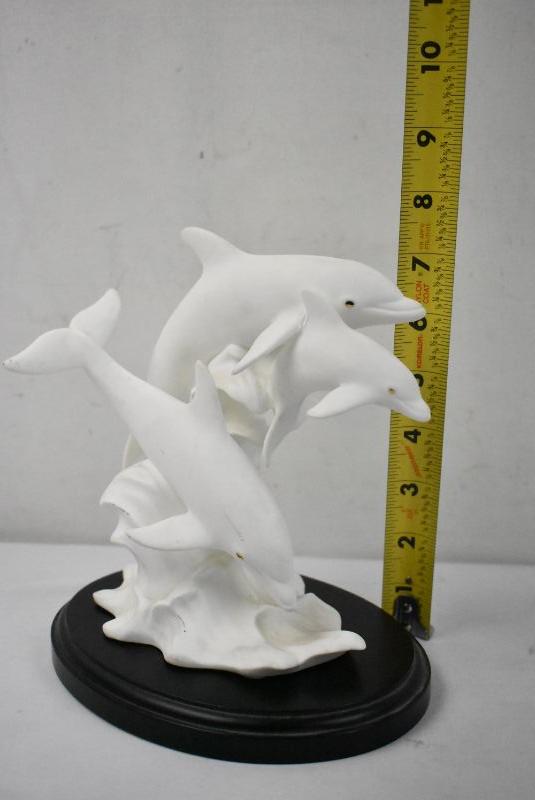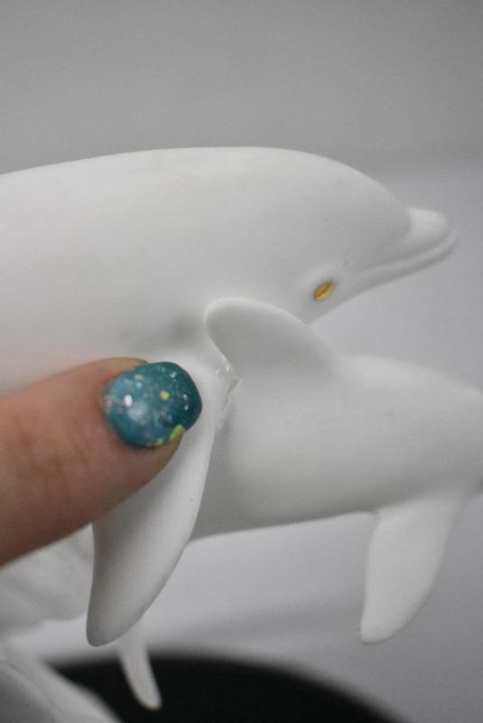 Lenox 3 Dolphins Figurine with Black Wood Base (broken/repaired) "Dance of the Dolphins" Lenox Sea Animal Collection 1991 Vintage