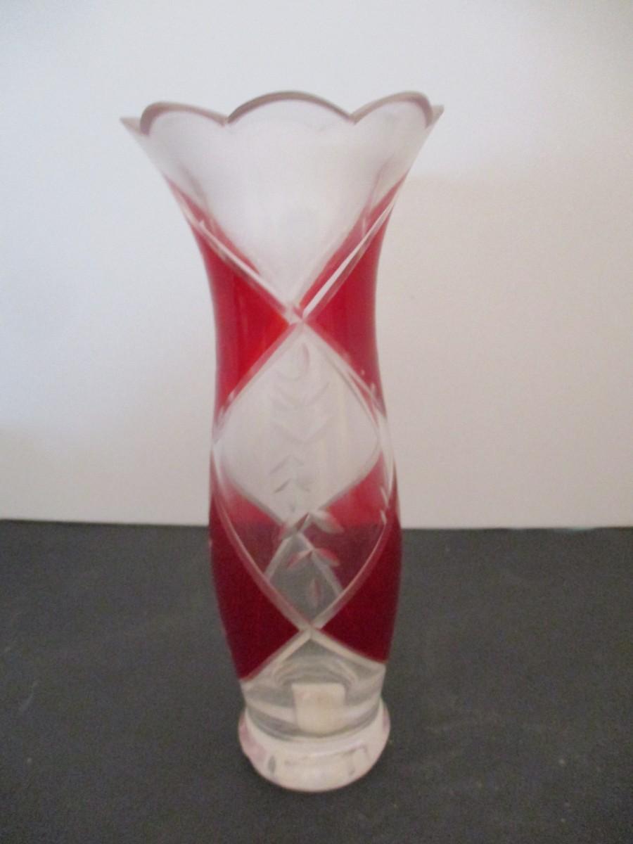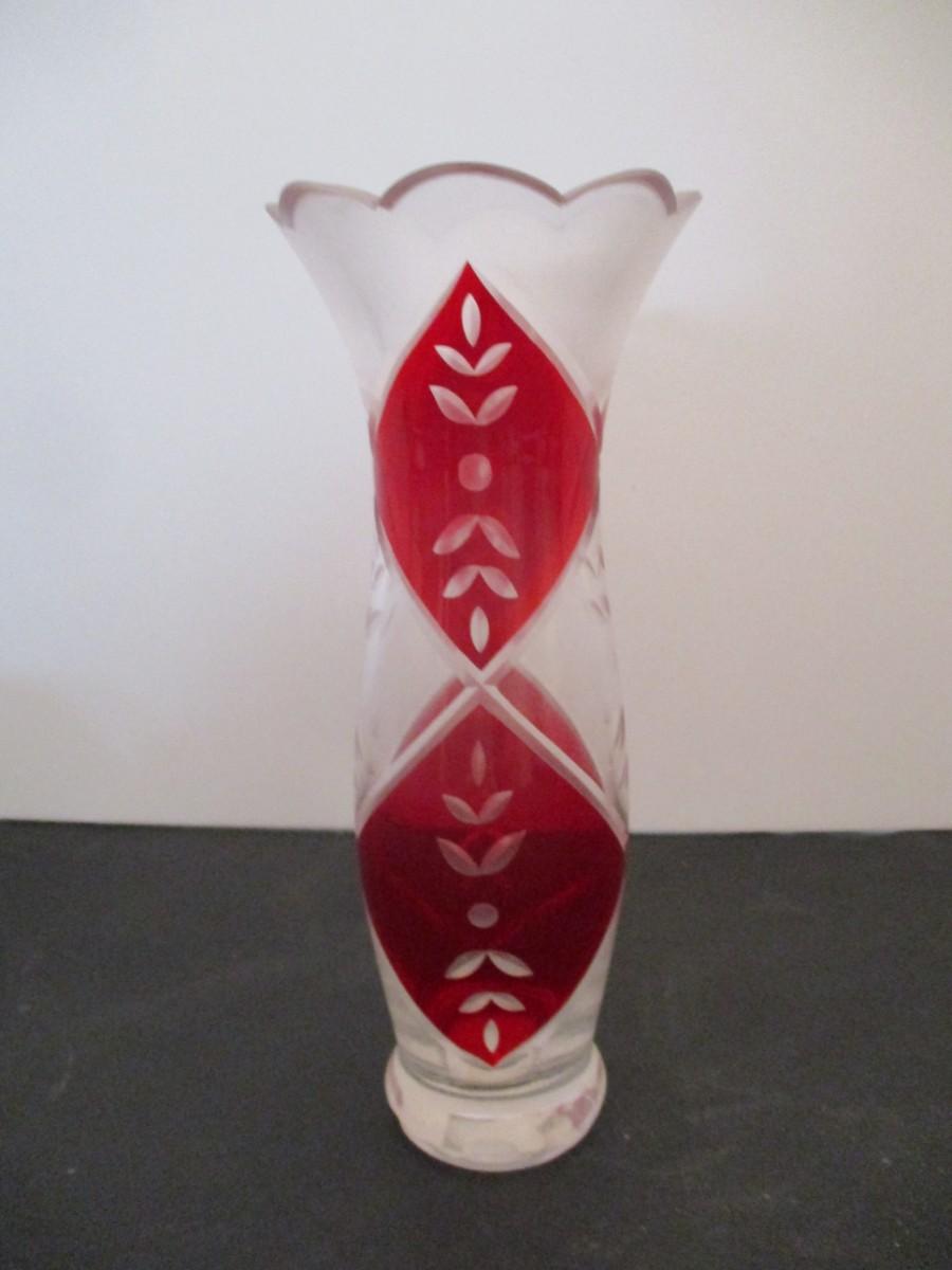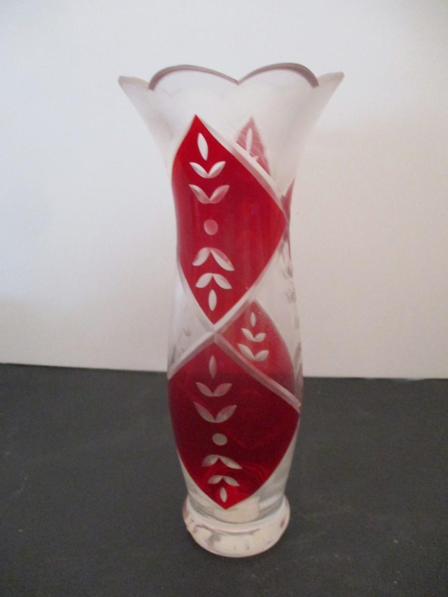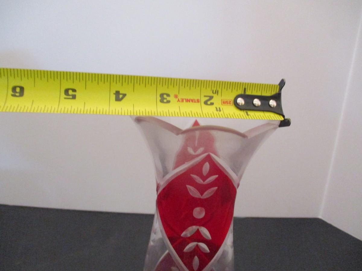 Lenox 9" Clear Ruby Red Etched Glass Vase