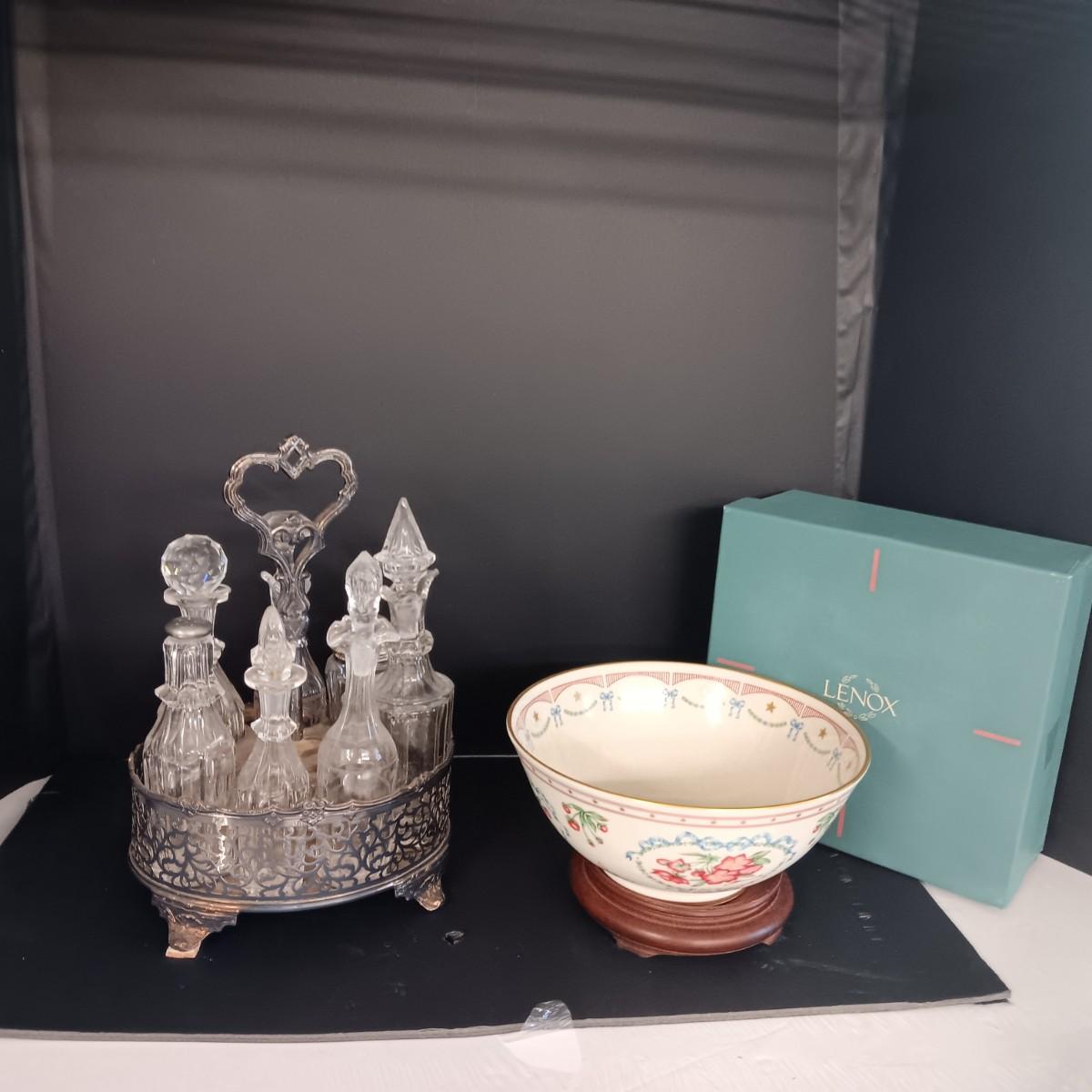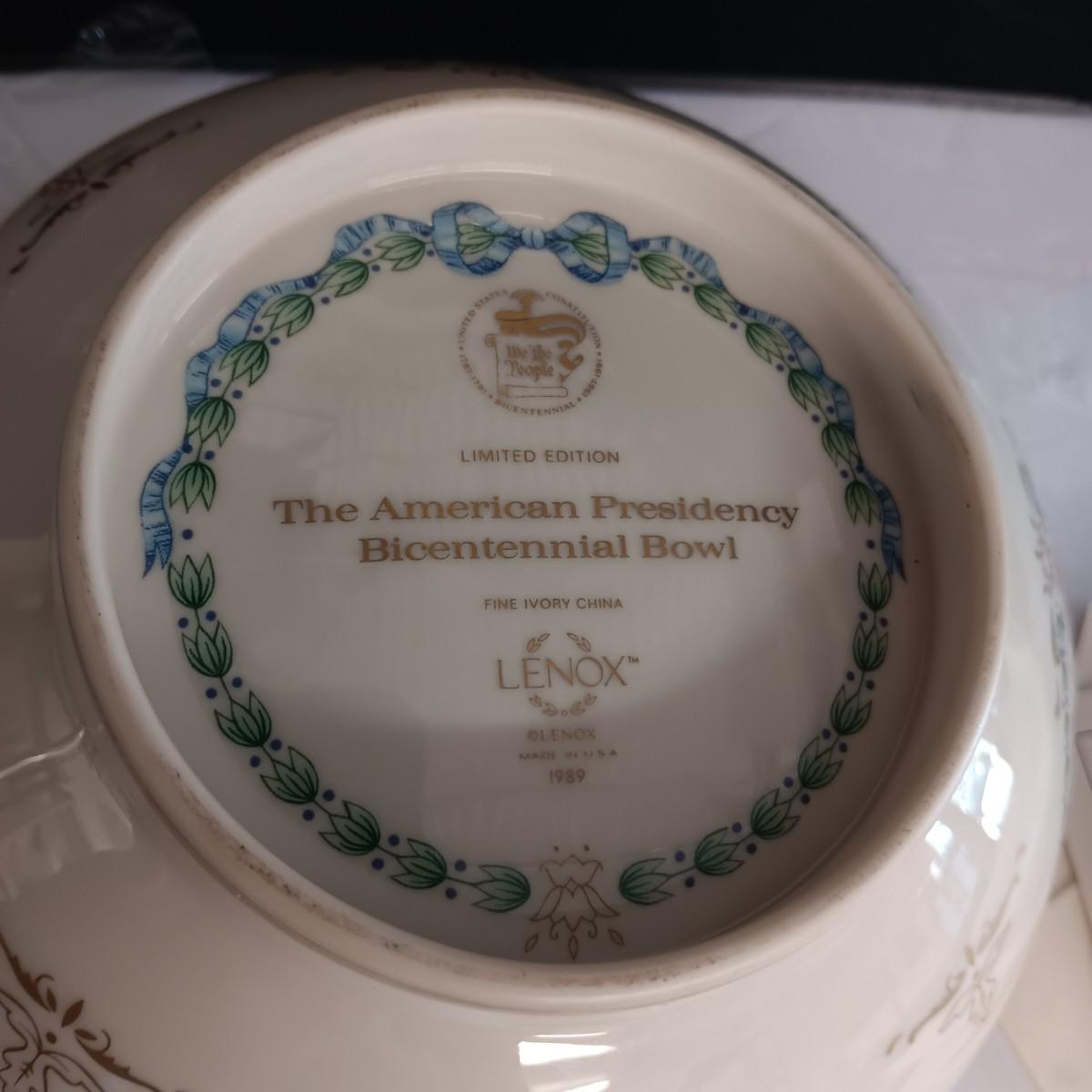 LENOX AMERICAN PRESIDENCY BICENTENNIAL BOWL AND AN ANTIQUE CRUET SET