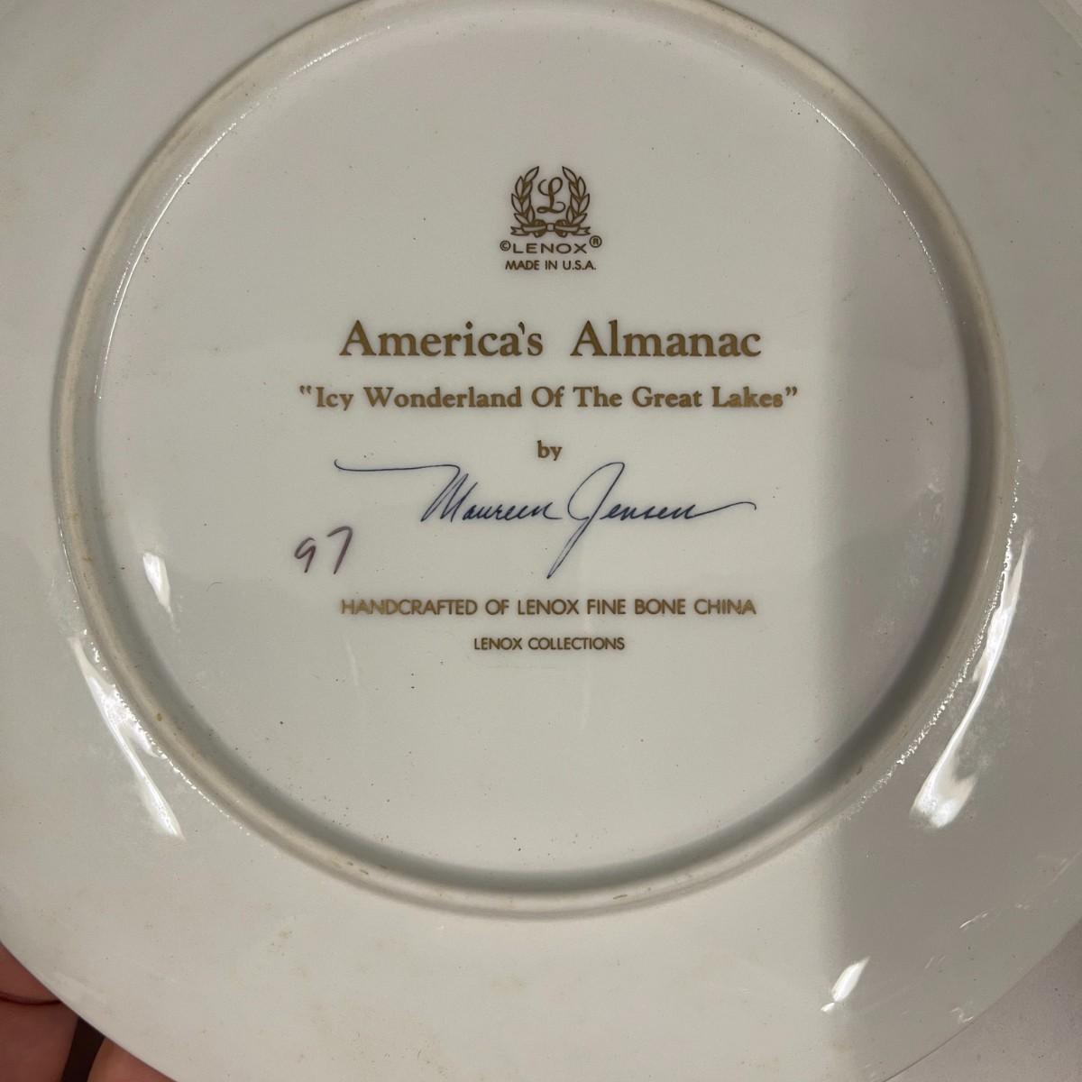 Lenox America's Almanac Collector's Plate Icy Wonderland of The Great Lakes, month of January, designed by Maureen Jensen. 9". Excellent, like new condition and in original box.