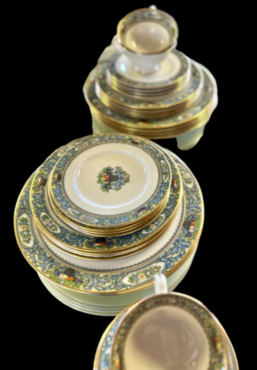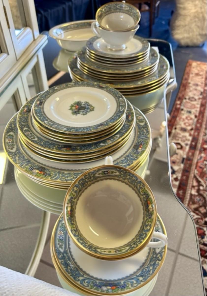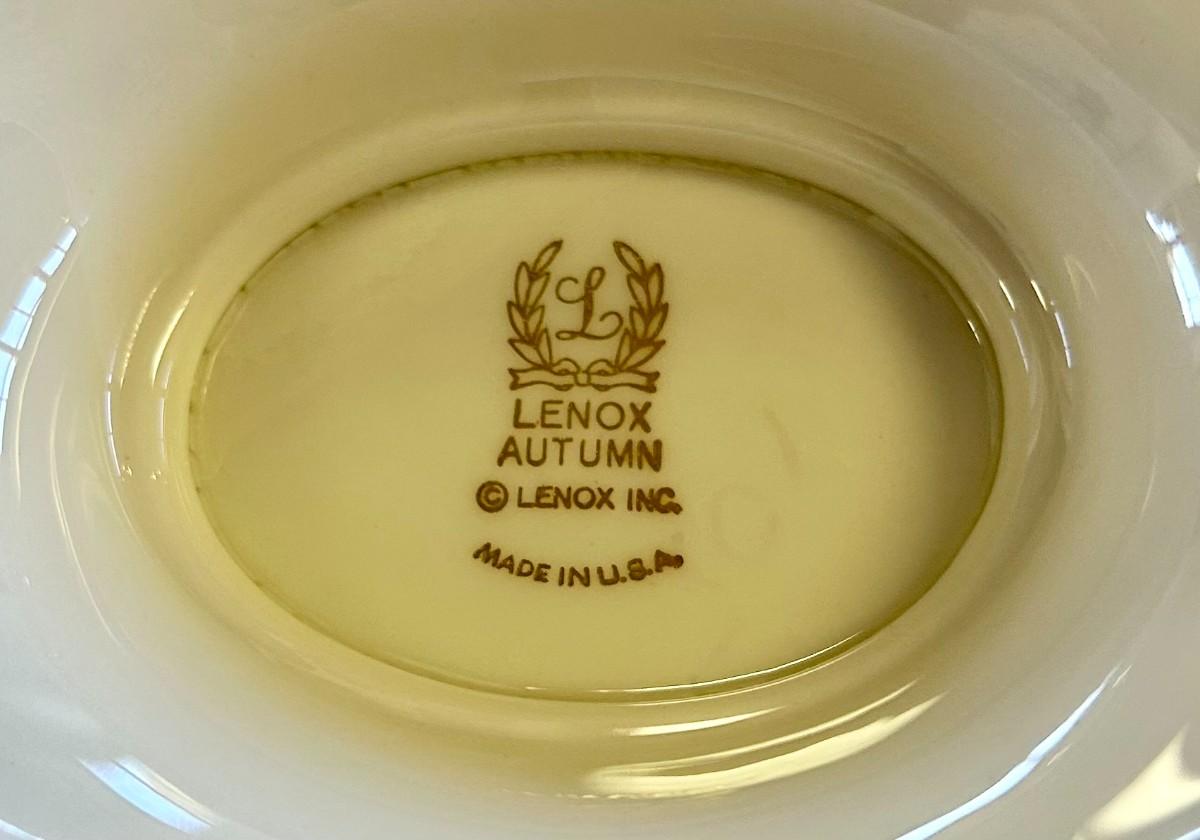 Lenox Fine China Pattern Autumn (Newer, Gold Backstamp). Set incudes 8 Dinner Plates, 8 Salad Plates, 8 Bread & Butter Plates, 8 Footed Cup & Saucer Sets. Excellent condition.