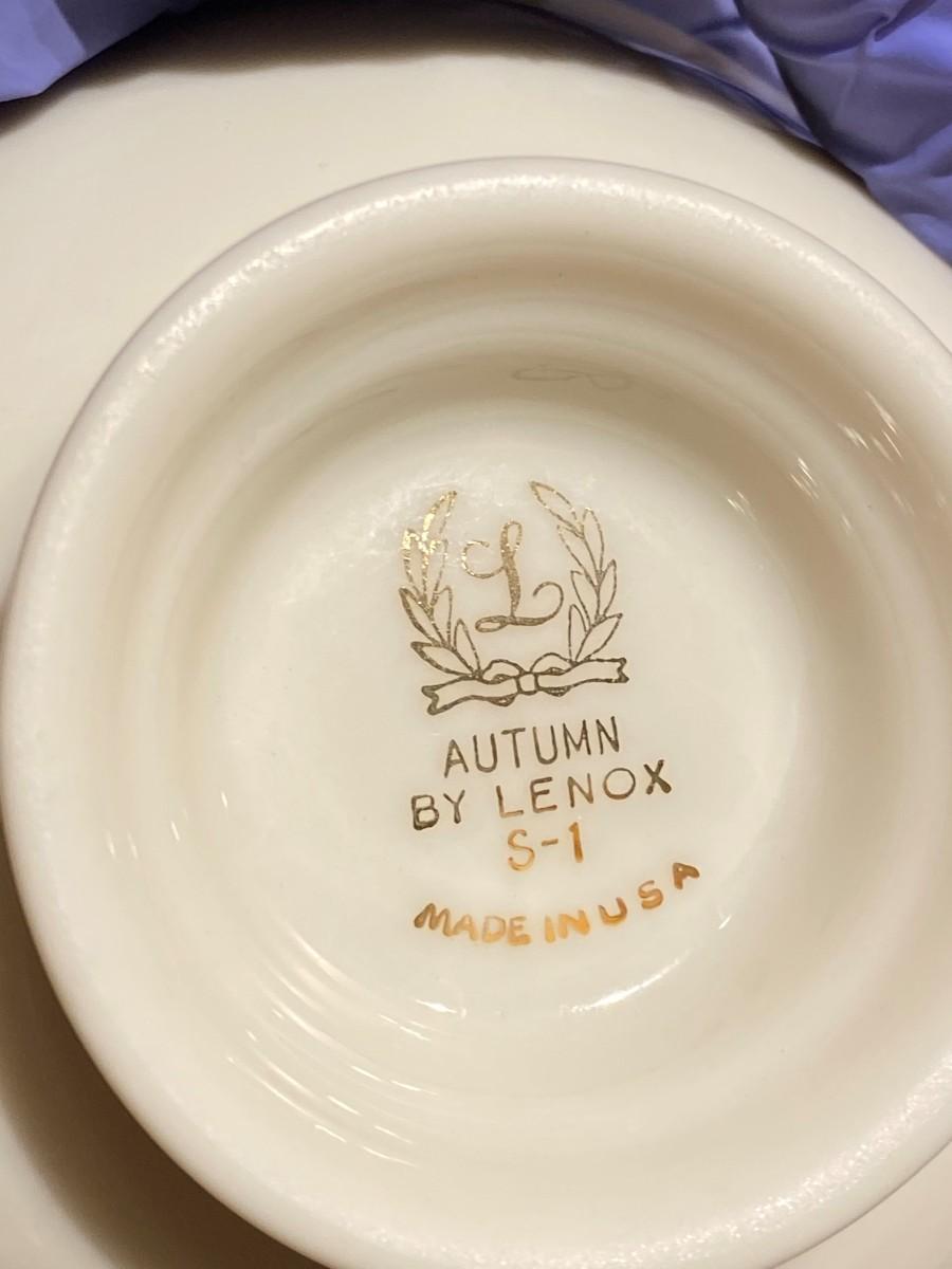 Lenox Autumn Fine China Large Set of Dinnerware. 12 Dinner plates, 2 salad plates, and 10 tea/coffee cups with plates. In good condition.