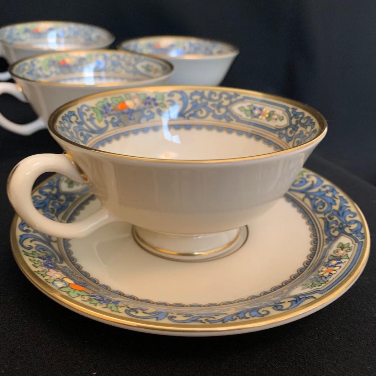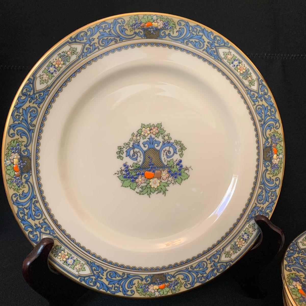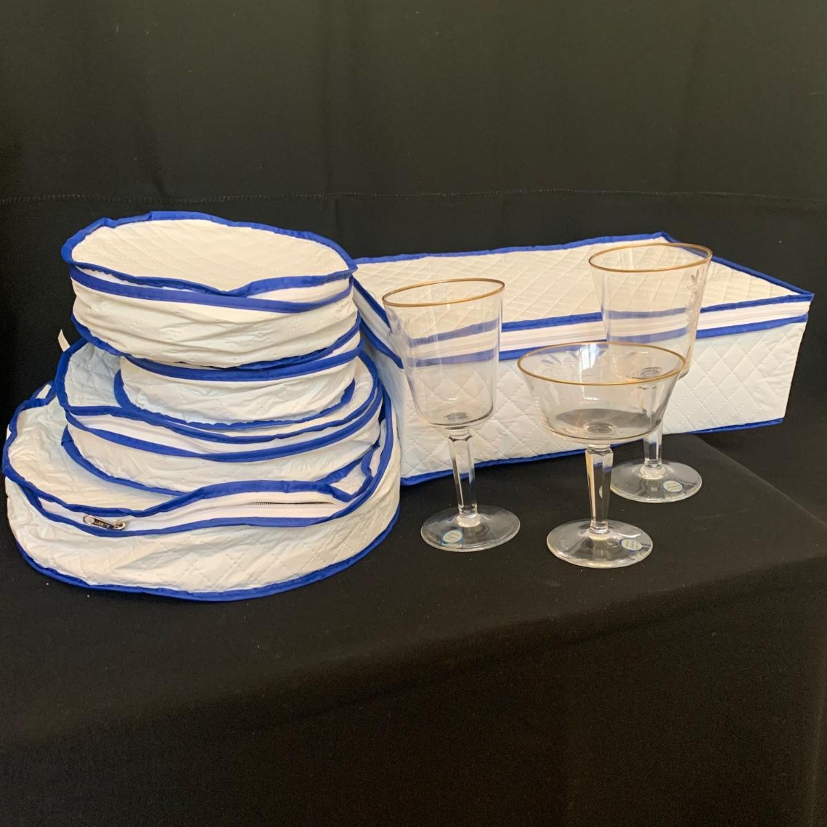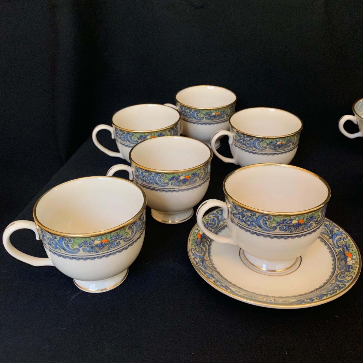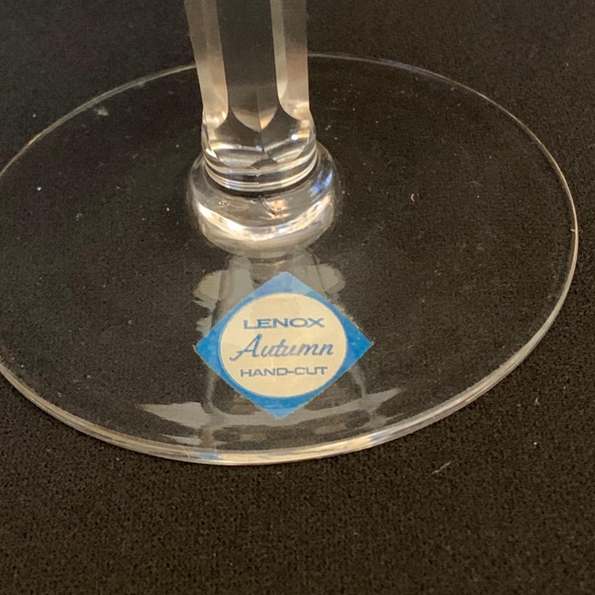 Lenox Autumn Gold china set complemented by crystal elements. The lot includes 10.5”D dinner plates, salad plates, and saucers for six, accompanied by two crystal goblets and one crystal dessert bowl. Lot also includes, five footed tea cups and six presidential tea cups. This Lenox collection boasts an exquisite raised painted design adorned with blue and gold trim. Protective storage bags are included. Please see photos for more details.