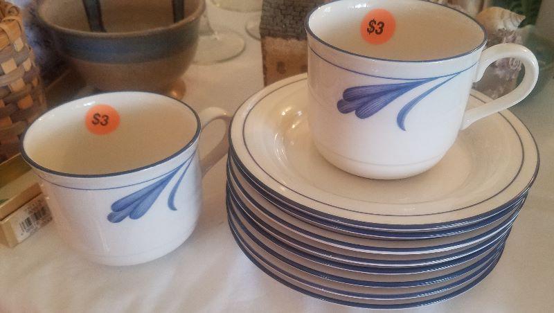 Lenox Blue Brushstrokes Chinastone Set of 2 cups and 8 Saucers