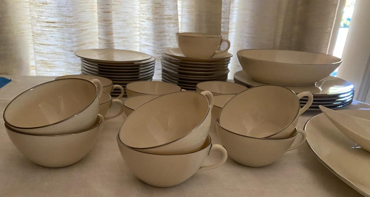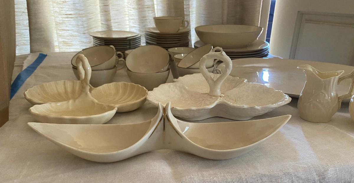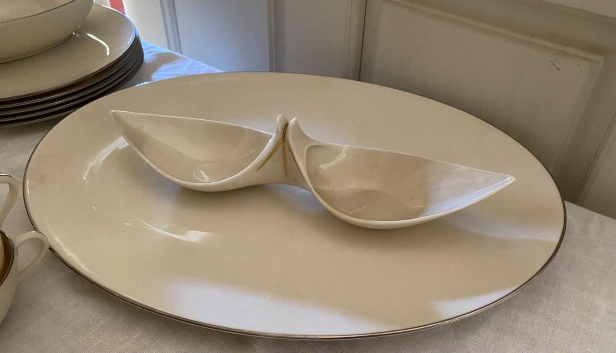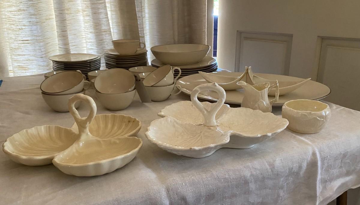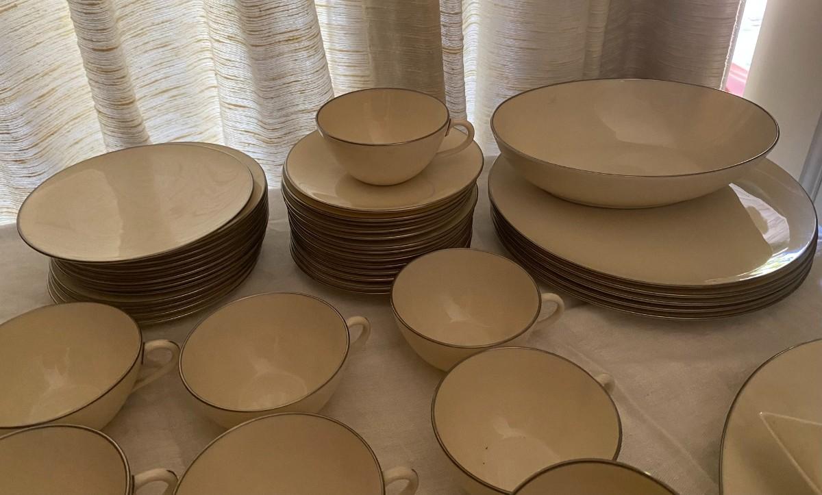 Cream and Gold Porcelain. beautiful set with nut dishes, and serving bowls.