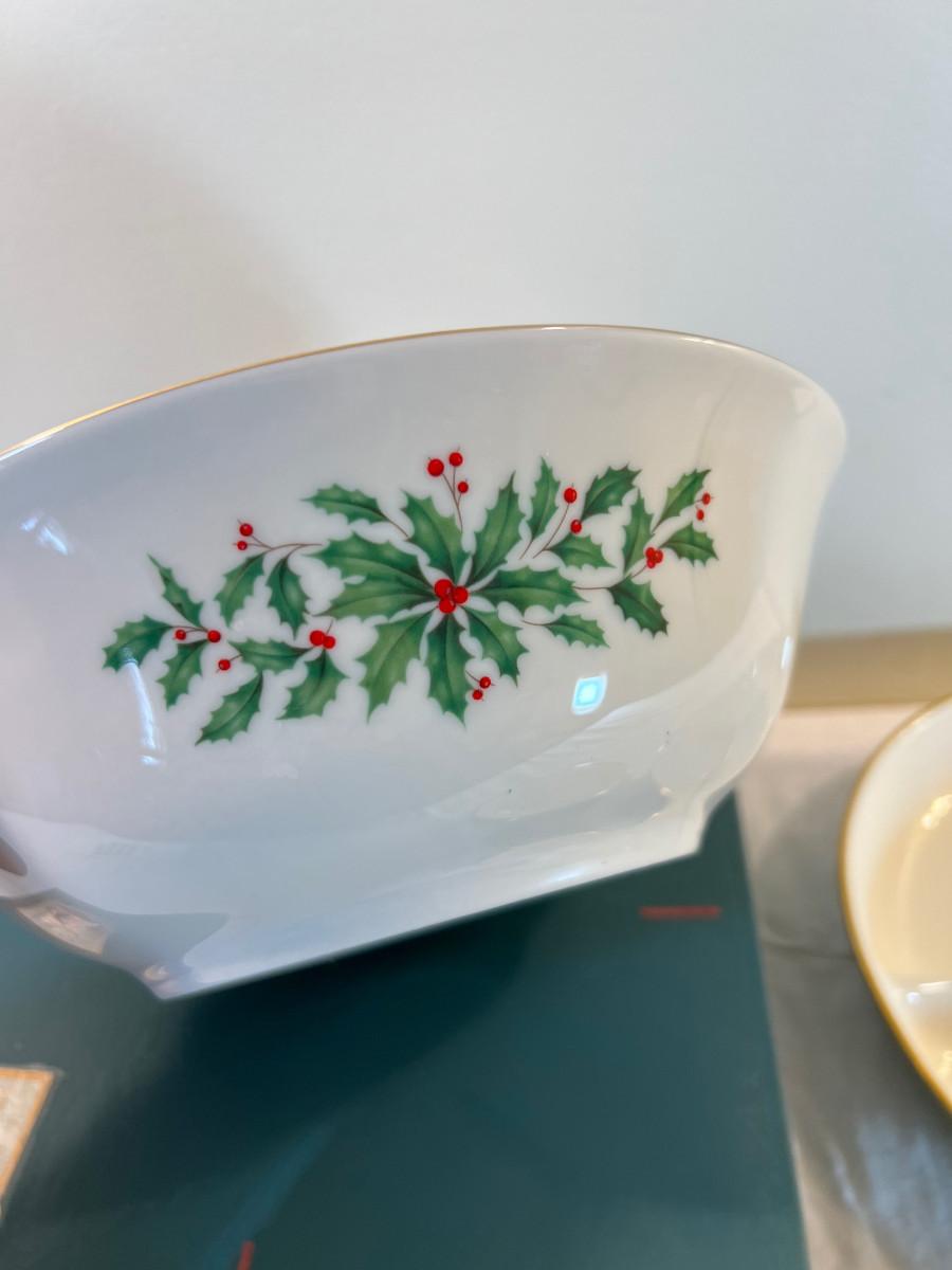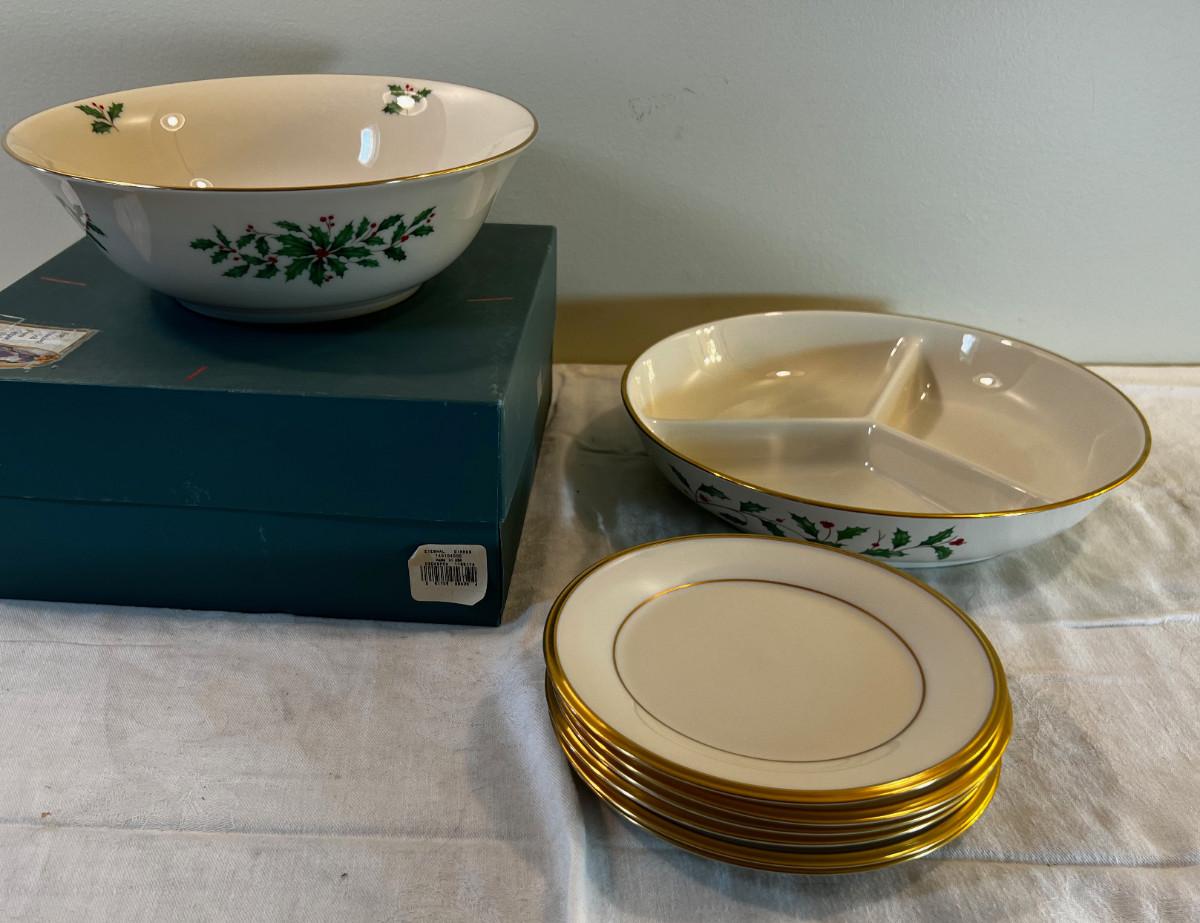 LENOX Both Christmas Bowls and Gold rimmed Dessert Plates