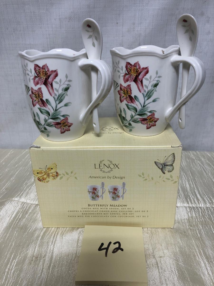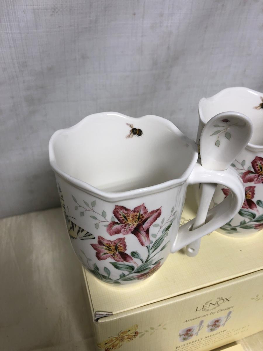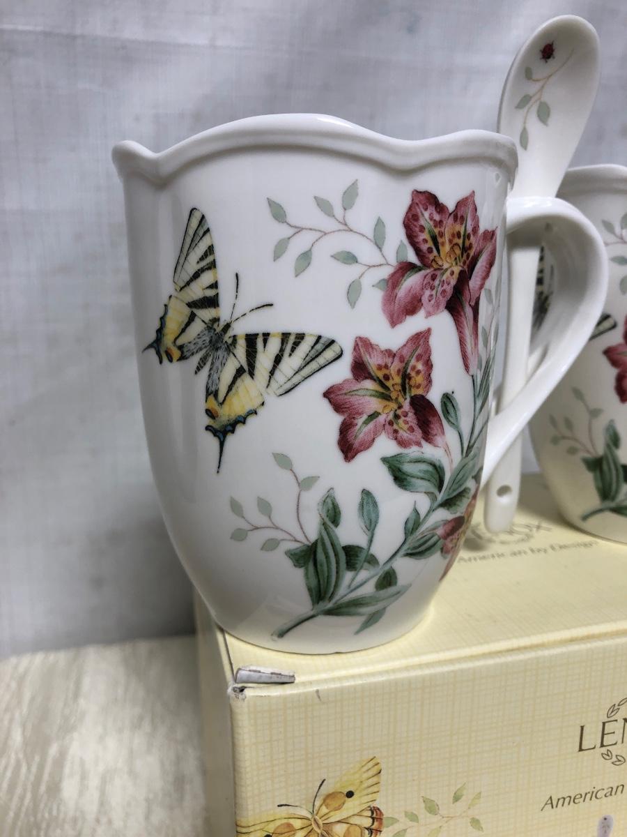 Lenox butterfly meadow cocoa mugs with spoon