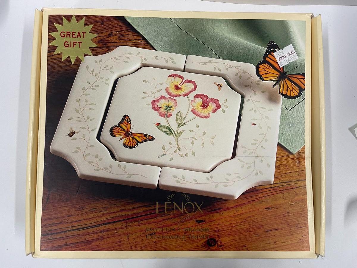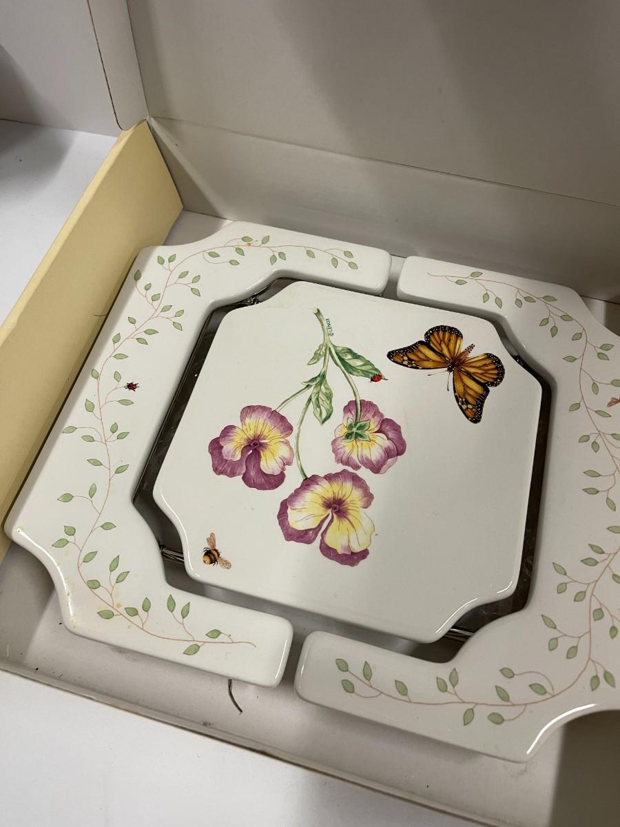 Lenox Butterfly Meadow porcelain trivet, expandable and in original box. 10" x 8 1/2"