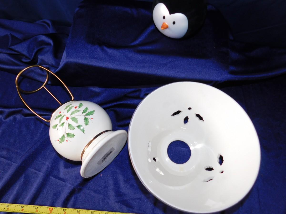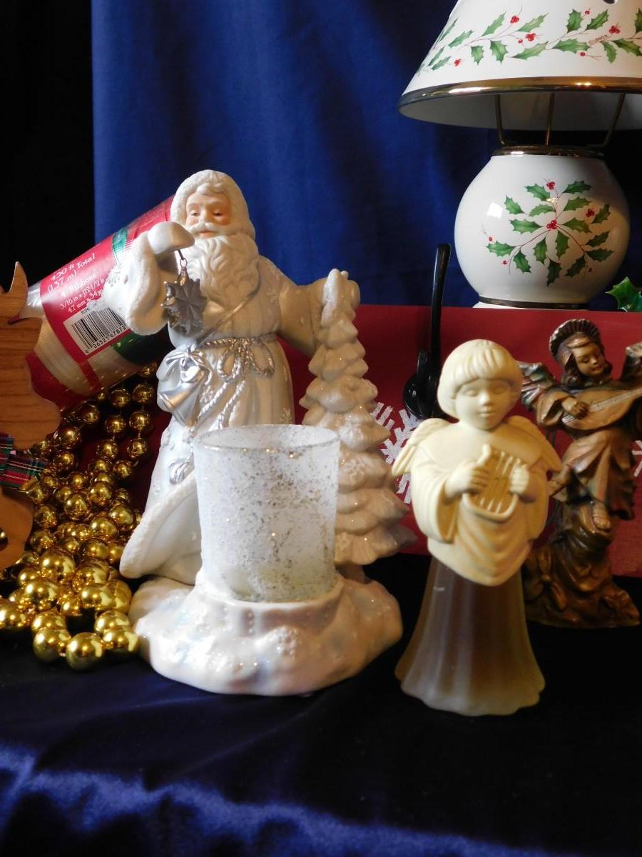 LENOX CANDLE LAMP, PARTY-LITE SANTA CLAUSE AND MANY MORE CHRISTMAS DELIGHT'S