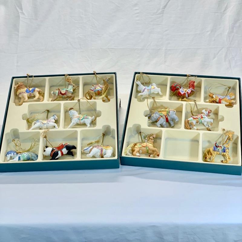 Lenox Christmas Carousel Set of 14 Ornaments w/ Original Box in excellent condition The box does show some light wear from storage, ready for your tree decorations. Shipping available for extra cost.