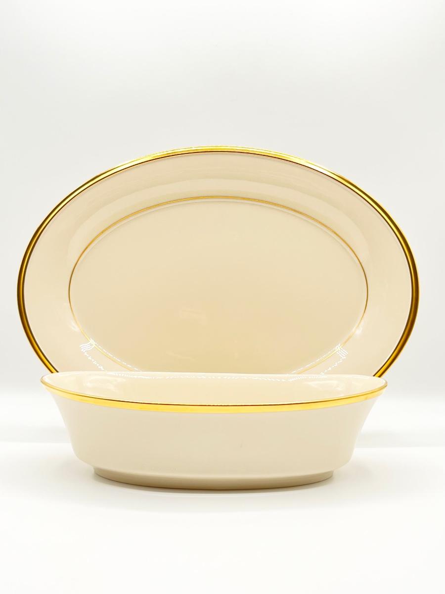 Includes = (10) Dinner plates ~ (10) Salad plates ~ (10) Soup bowls ~ (10) Cups & Saucers ~ Includes 2 Pc BONUS ~ (1) 14” Oval Serving platter ~ (1) 10 1/4” Oval Serving bowl ~