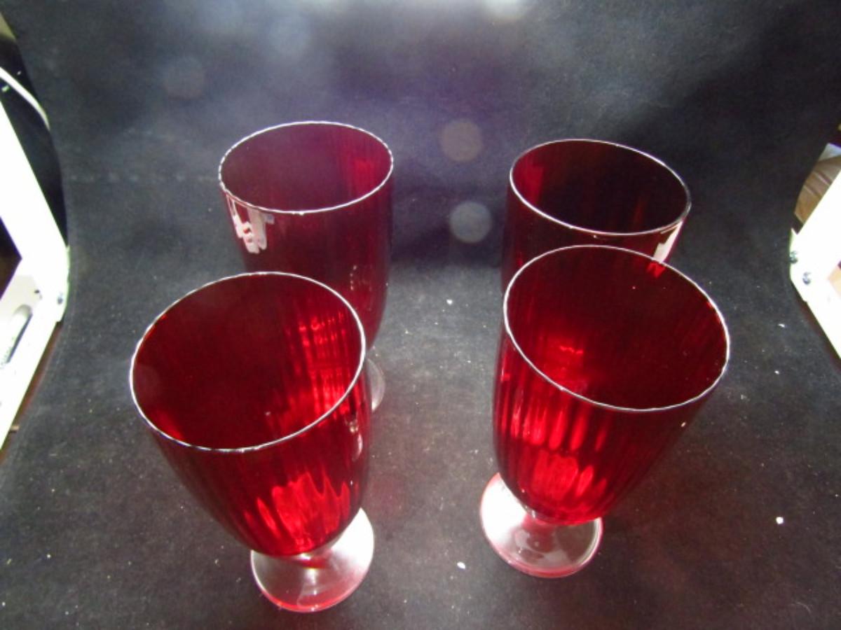 Lenox Crystal Footed Red Goblets- Set of Four with Box (#549)