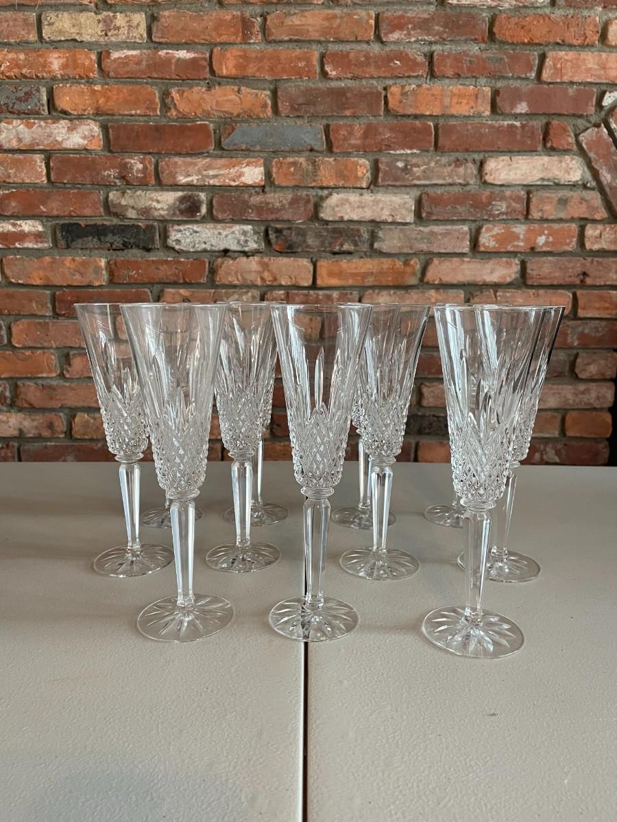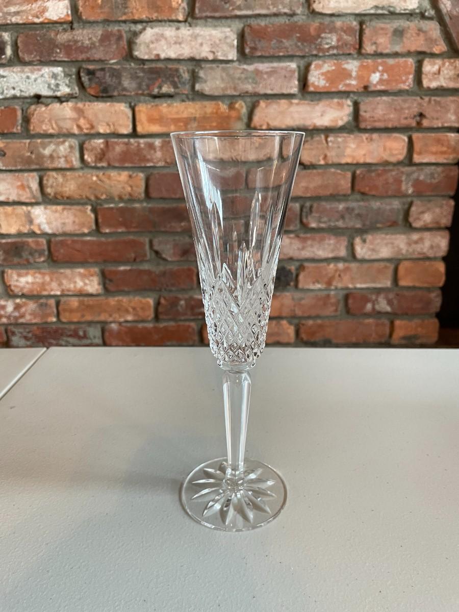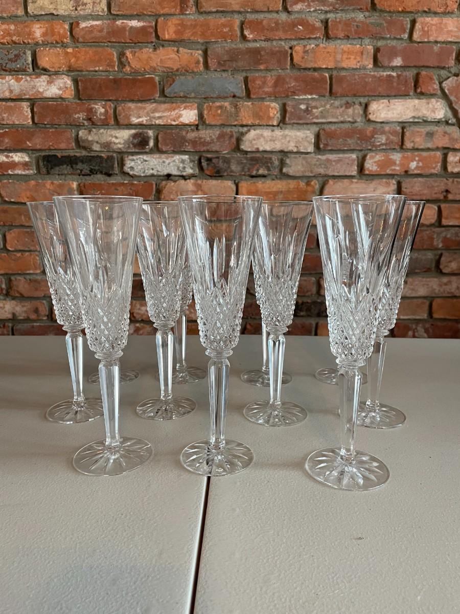 11 set fluted champagne glasses by Lenox Crystal. 3W x 9H.