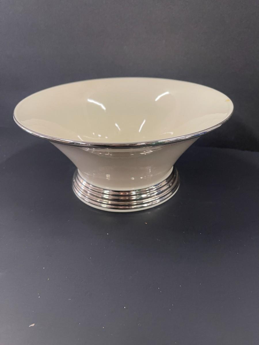 Lenox Dimension Collection Solitaire Nouveau bowl with silver rim, excellent condition. Approx 8 1/2" diameter x 4" high.