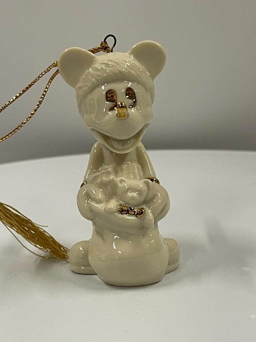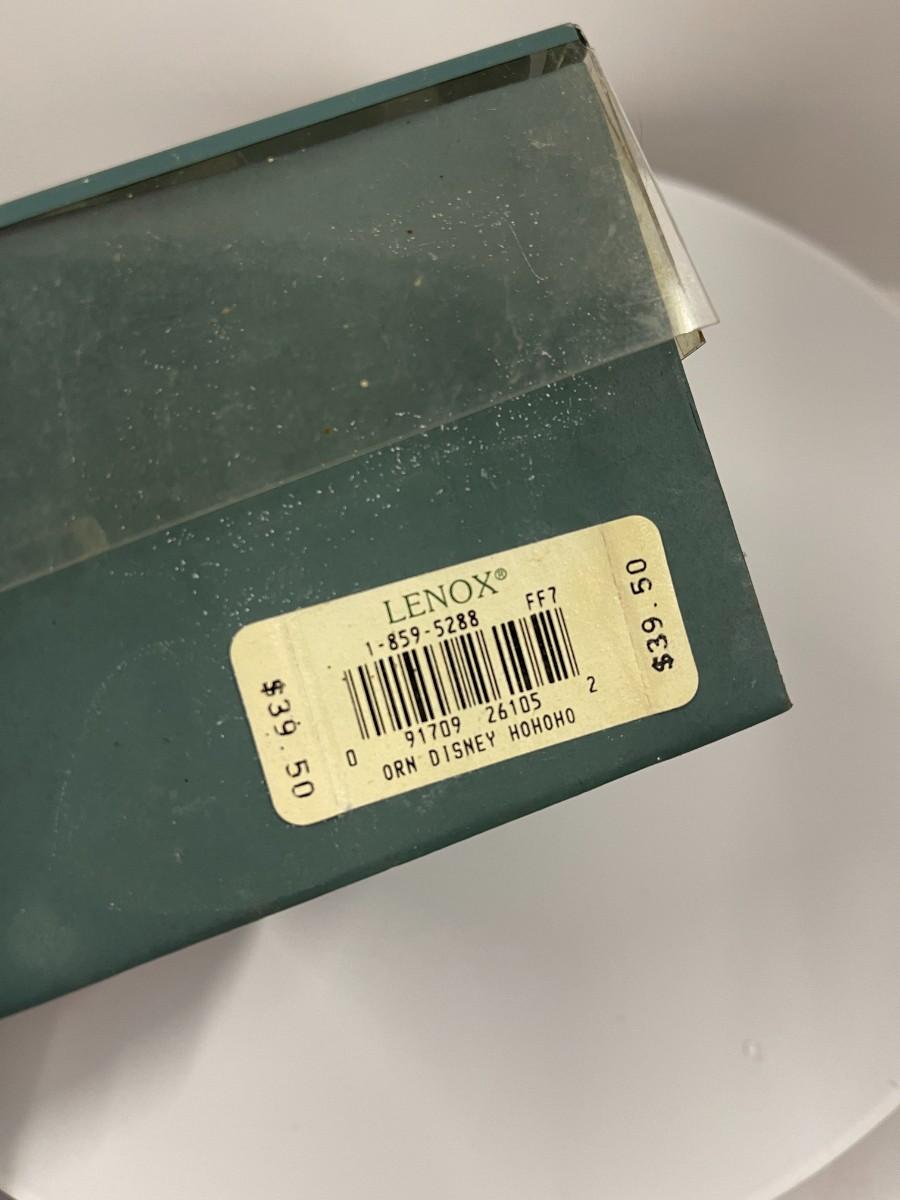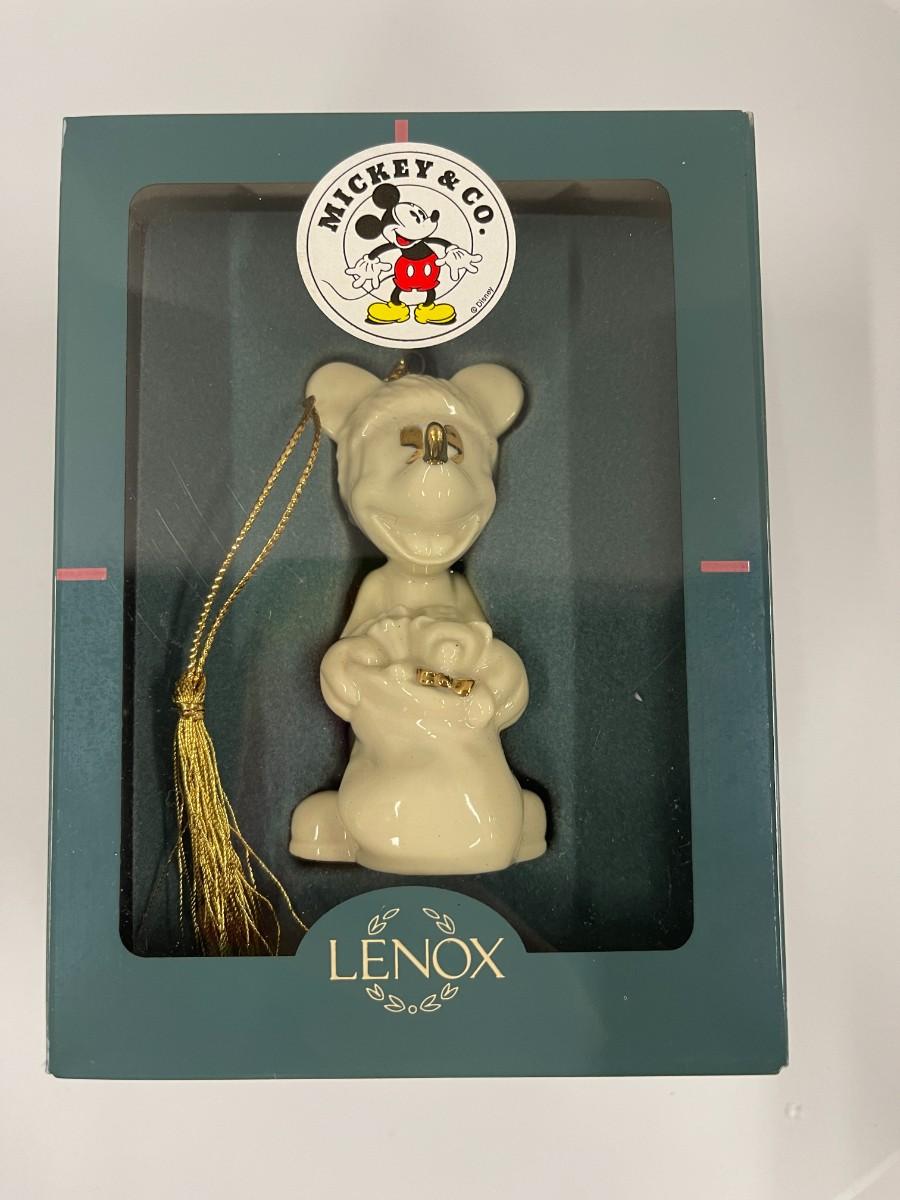 Lenox Disney Mickey Mouse "Hohoho" porcelain ornament. Excellent, like new condition. Comes in original box but box shows wear and has some staining. # 1272