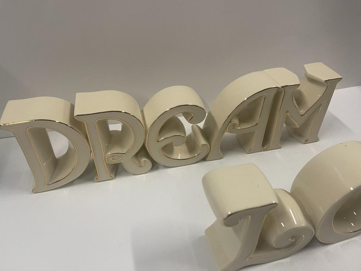 Lenox Expressions porcelain figures "Love" & "Dream". Each is in excellent condition. Dream measures 12" x 3 1/4" and Love is 10" x 3 1/4".