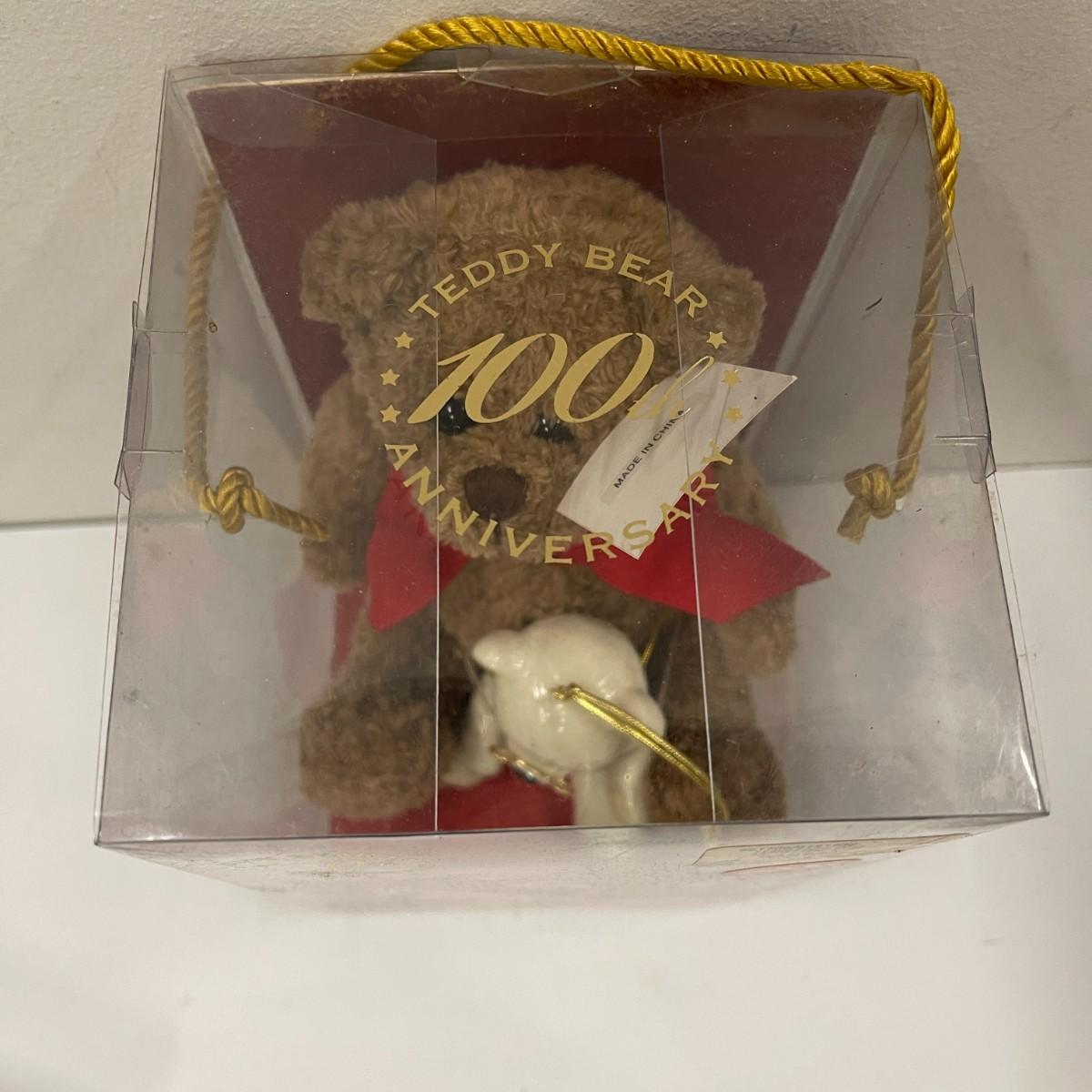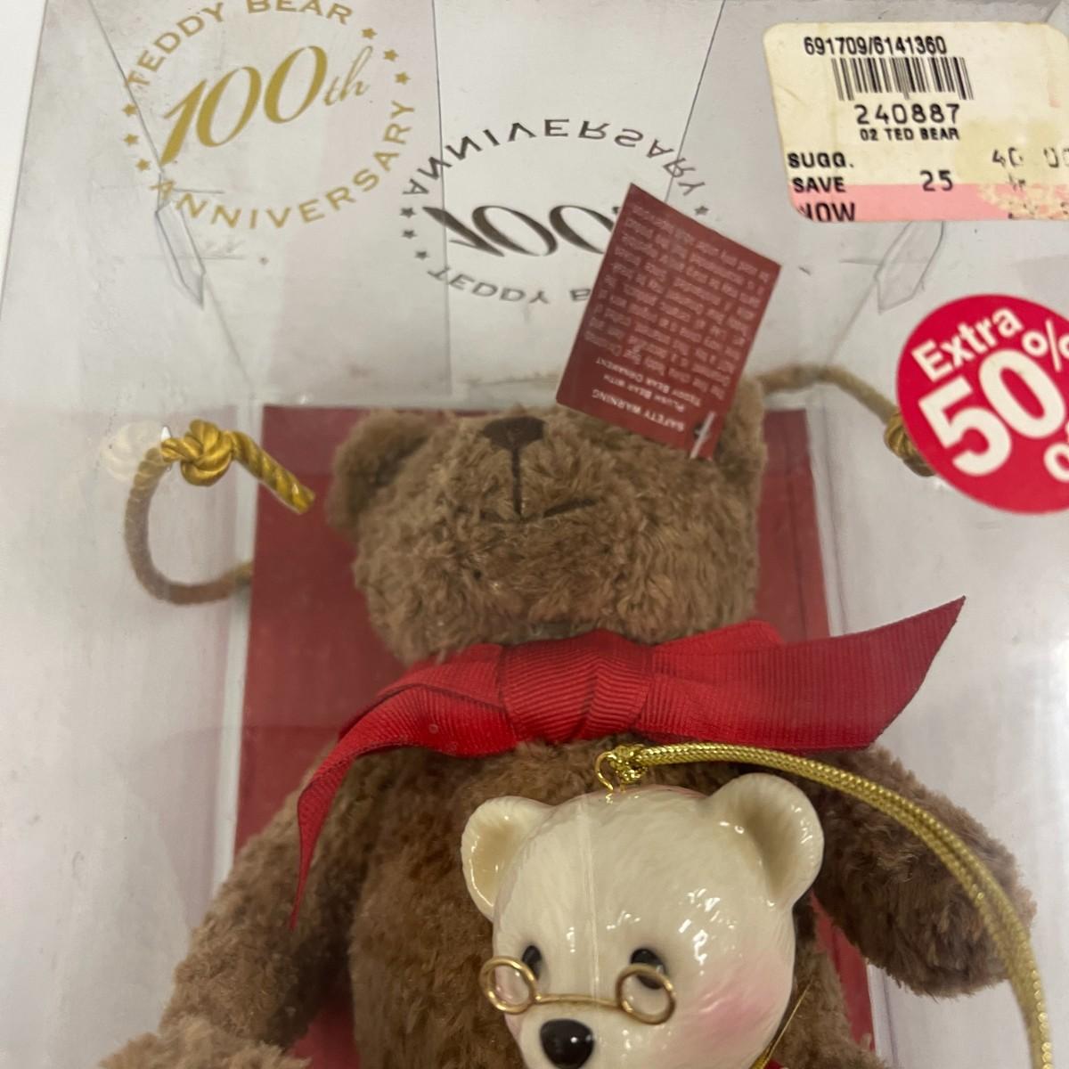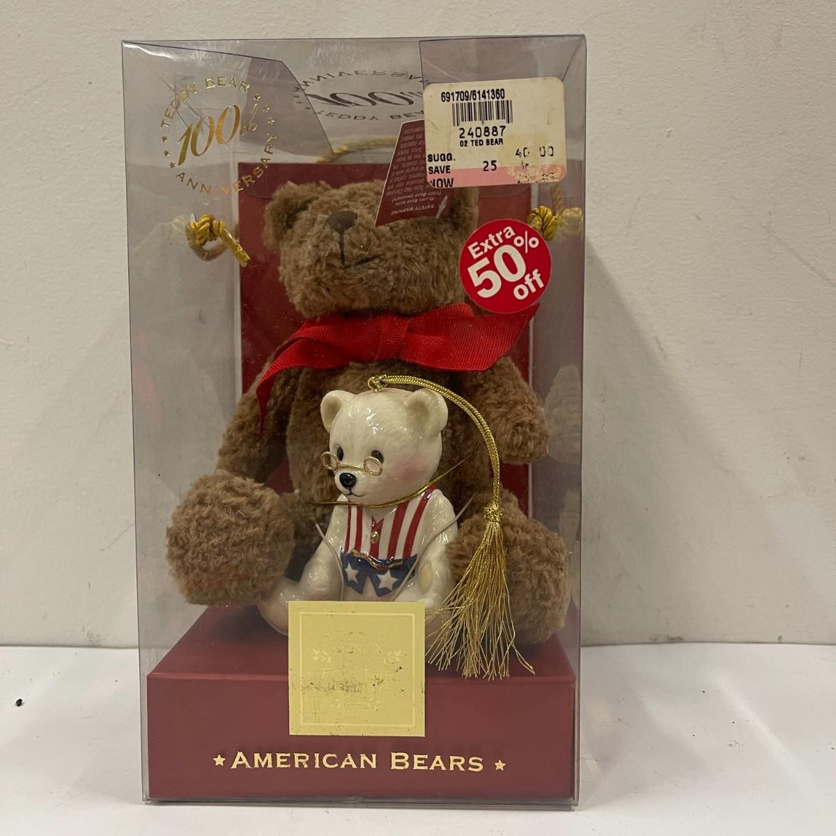 Lenox For the Holidays 100th Anniversary American Bears Ornament and Plush Bear. In original box, but box shows wear. 8 1/2" x 5"