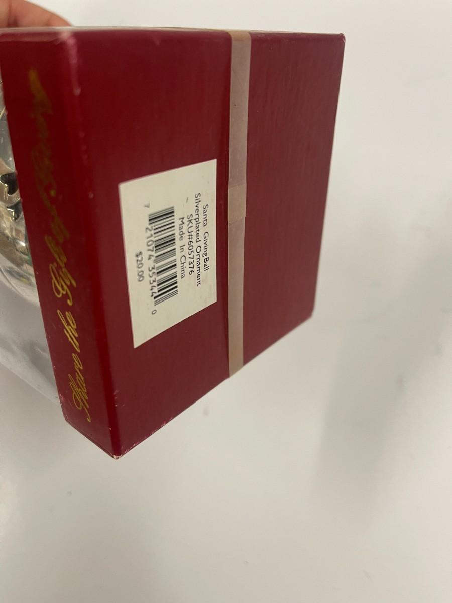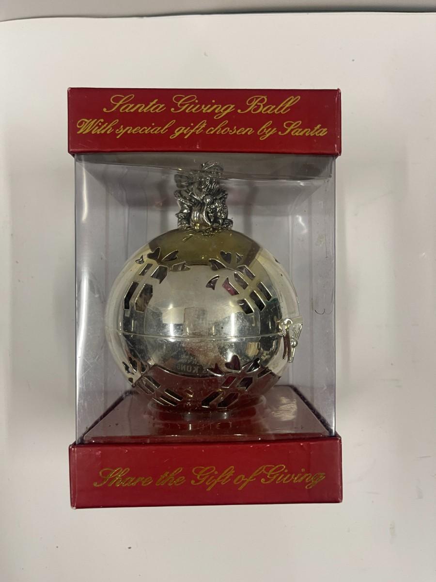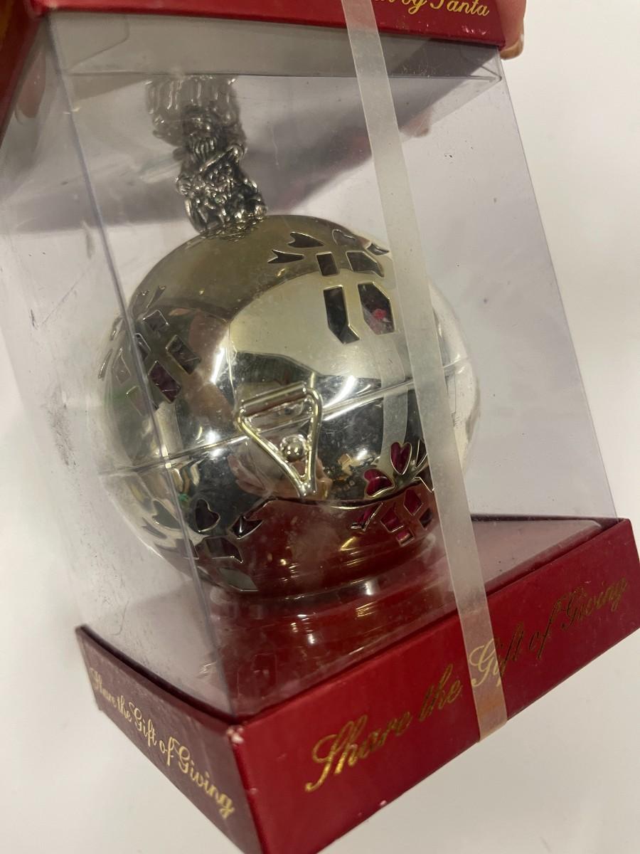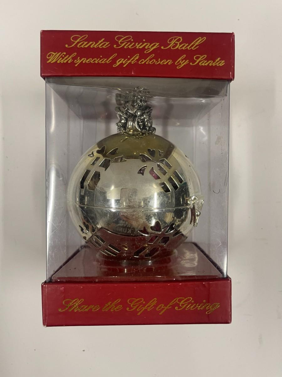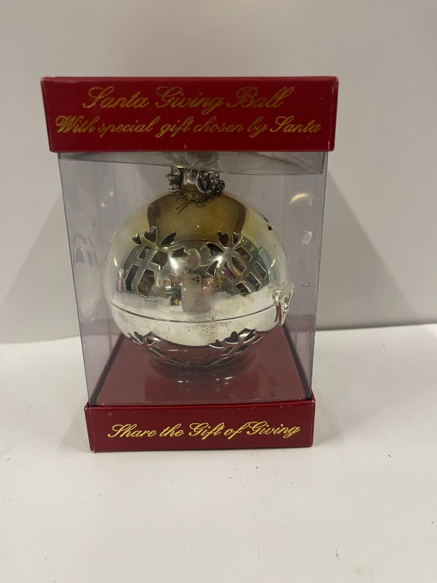 Lenox For the Holidays Santa Giving Ball silverplated ornament, new in box.