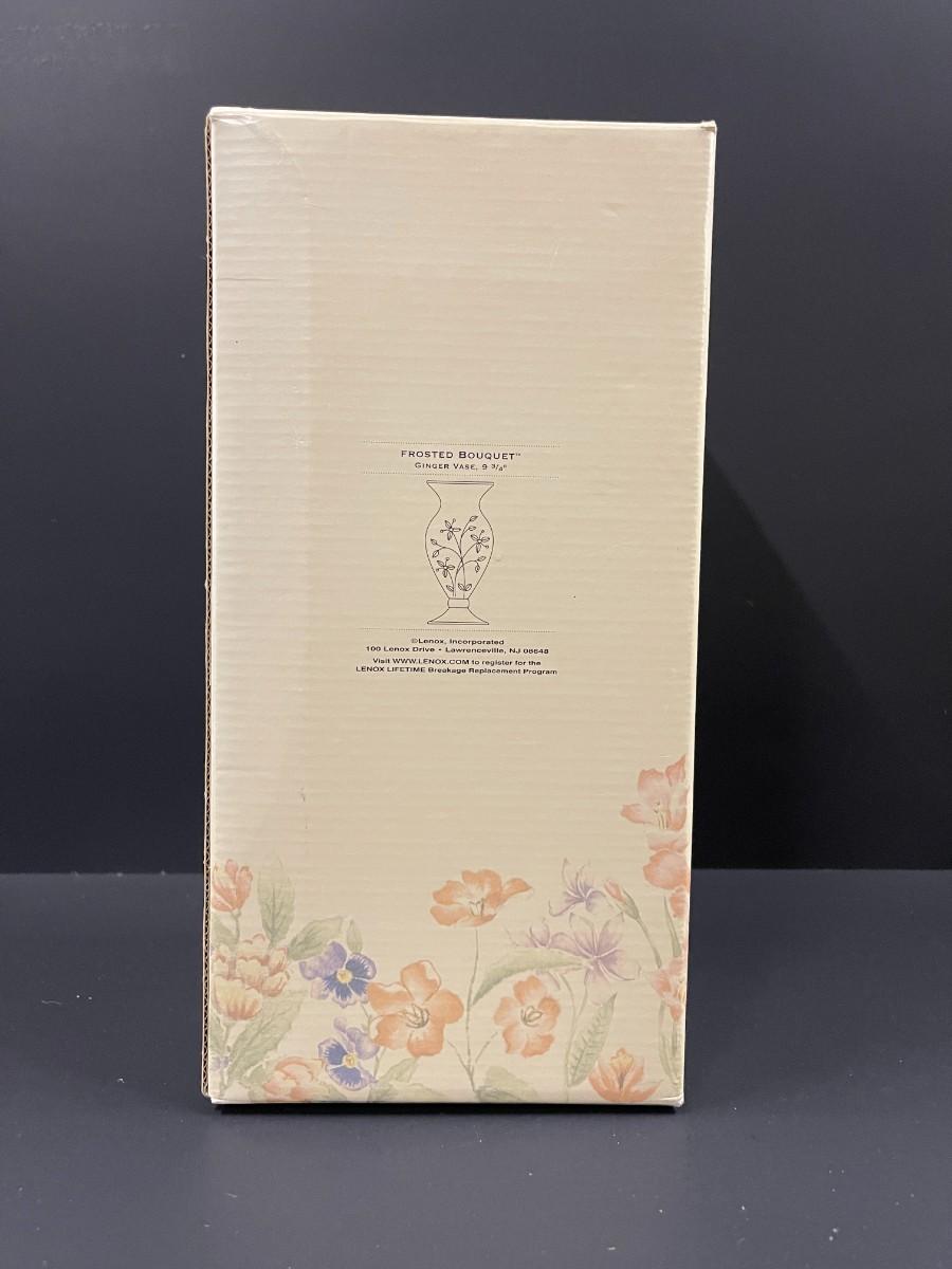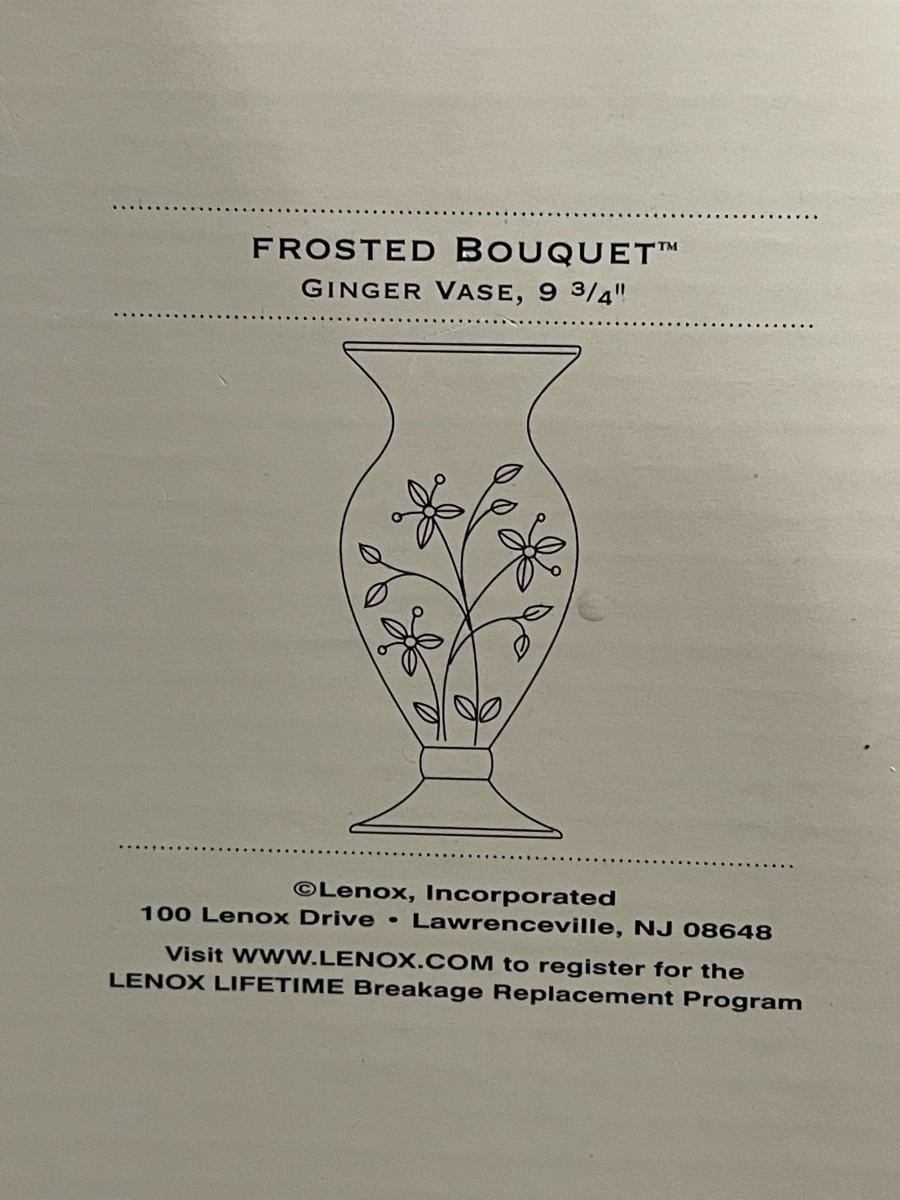 Lenox Frosted Bouquet Ginger Vase, 9 3/4. Like new condition, in original box.