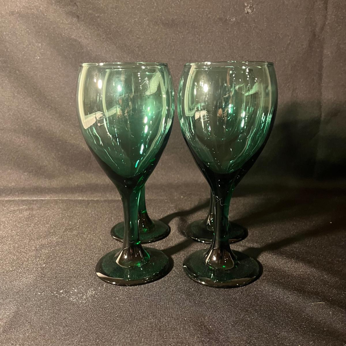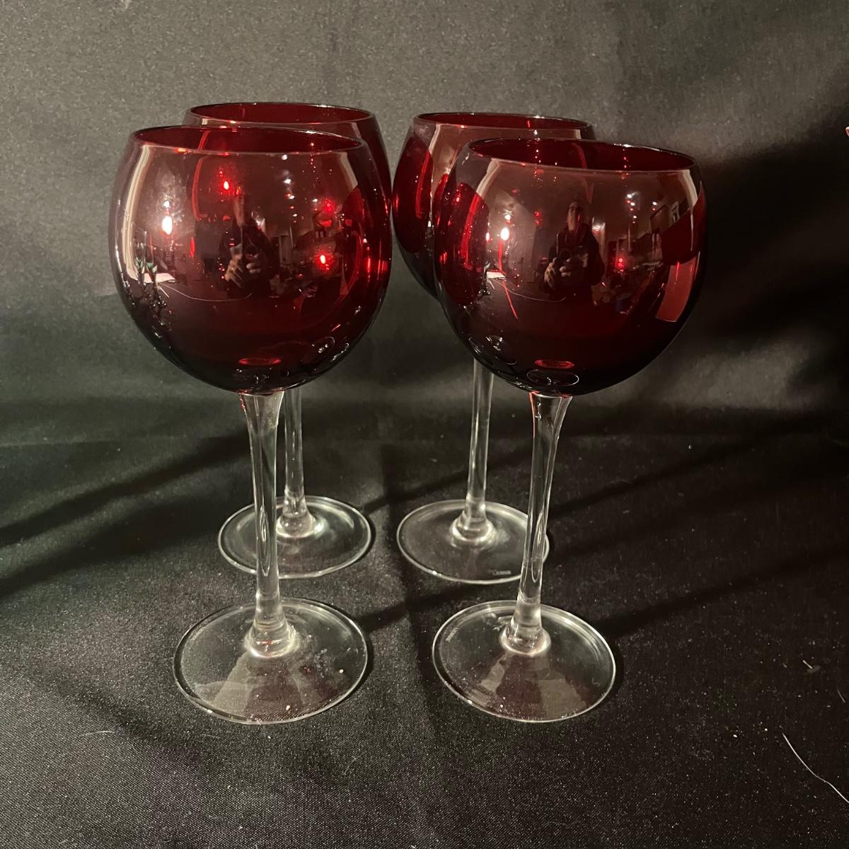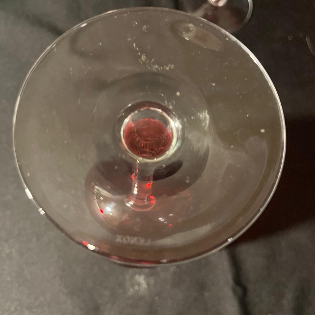 Lot includes four Lenox red and clear wine goblets in box, four green wine goblets and two clear wine goblets with tri color banded stems. Lenox glasses measure 4”D x 9”H.