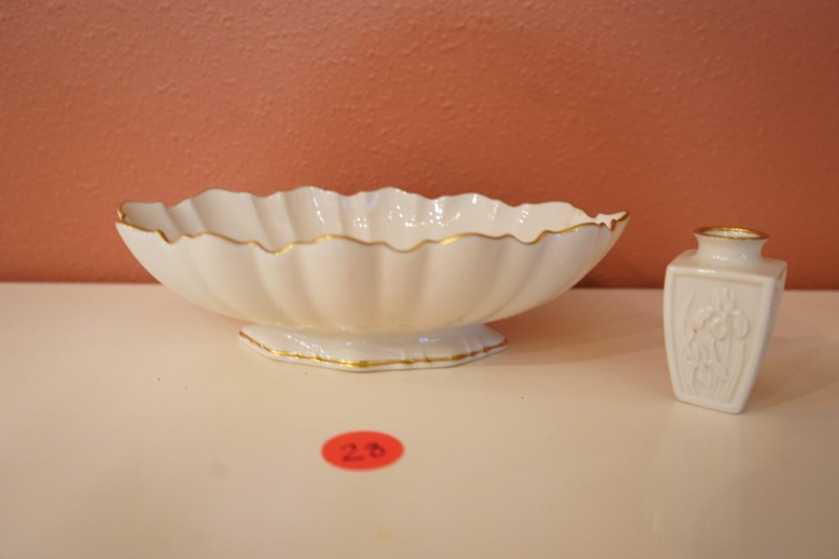 And Small Vase. Dish measures 11W x 7.25D x 3H. Vase measures 1.75W x 1.75C x 3H.