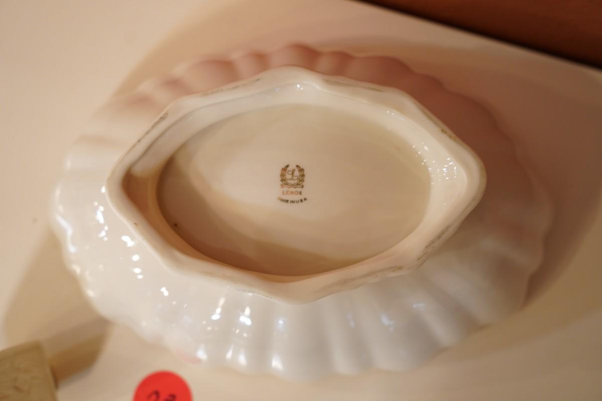 Lenox Gold Rim Large 11" White Acanthus Leaf Shape Oval Bowl