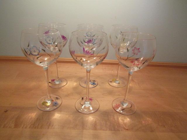 Lenox Handpainted Wine Glasses- 6 Total (9" Tall)