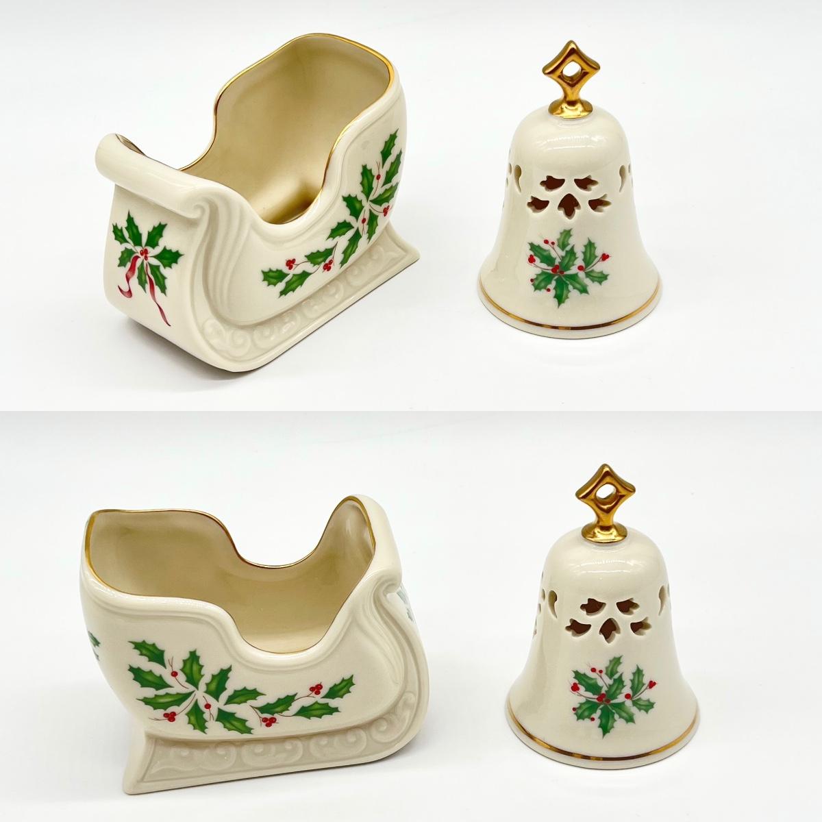 Includes: 1 Sleigh, 1 snowman, 1 bell, 2 candy dishes, 1 lidded jar, & 1 vase ~ Bell & sleigh = approximately 4” H