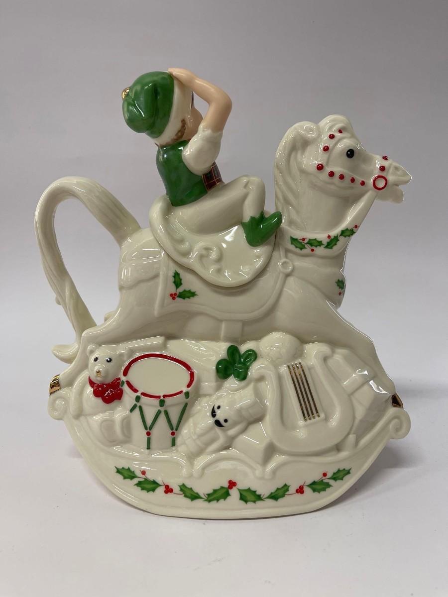 <p>Lenox Holiday Elf And Rocking Horse Teapot. Excellent condition. Comes I original box. </p>