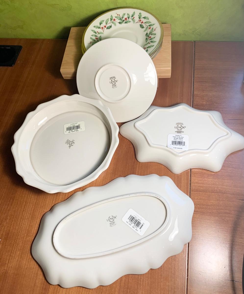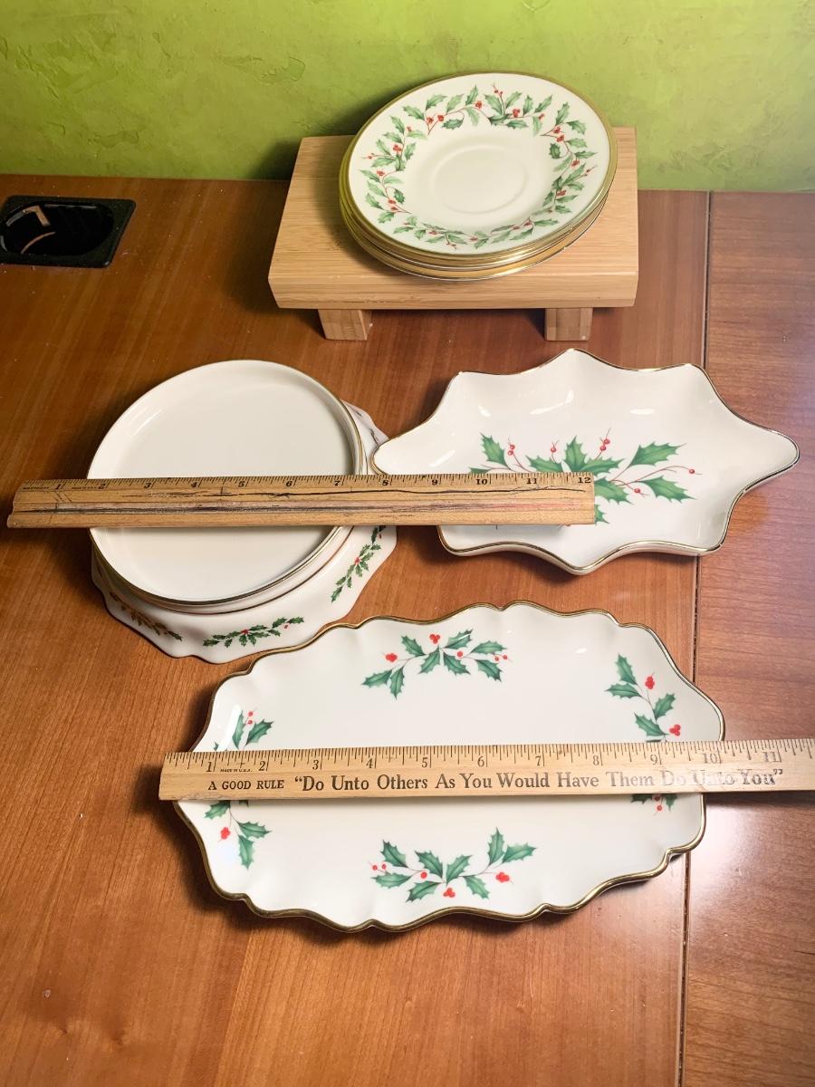 Random pieces of Lenox Holiday, Dimension Collection, Serving tray, candy tray, punch bowl holder and saucers (3)
