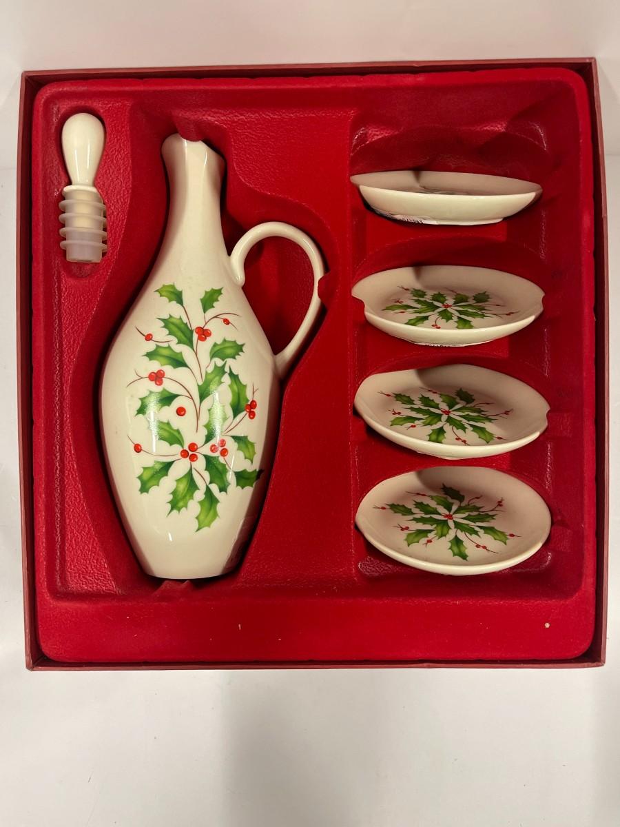 Lenox Holiday Oil Bottle Gift Set, new in box. Box shows some wear. # 1337