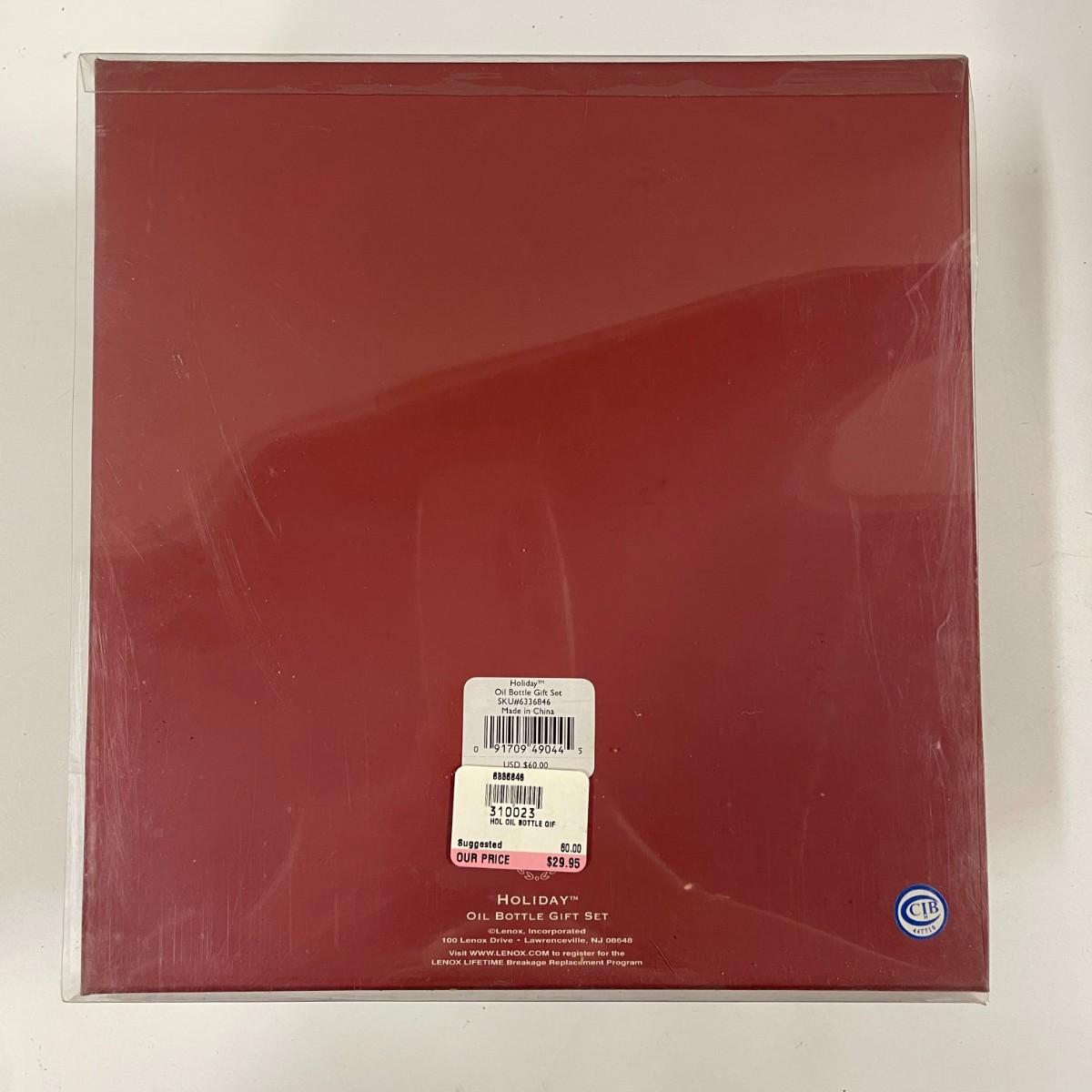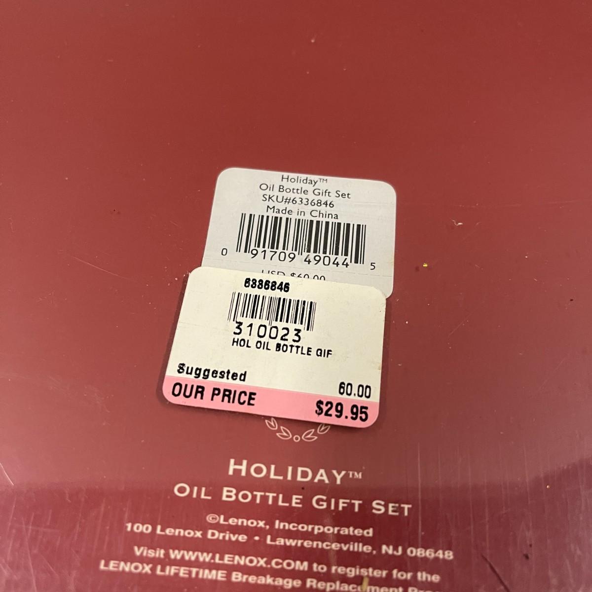 Lenox Holiday oil bottle gift set. New in box. Box shows wear.
