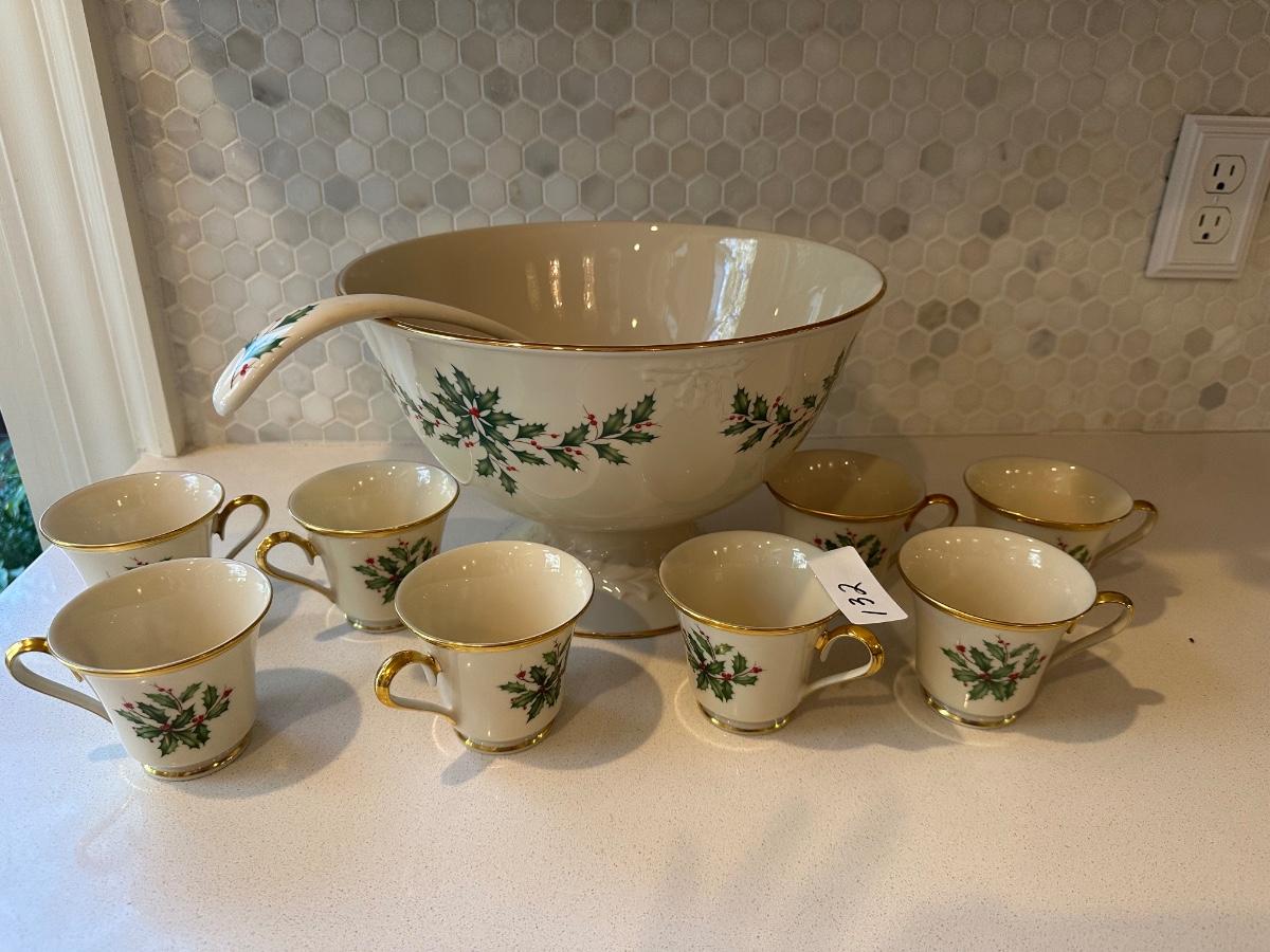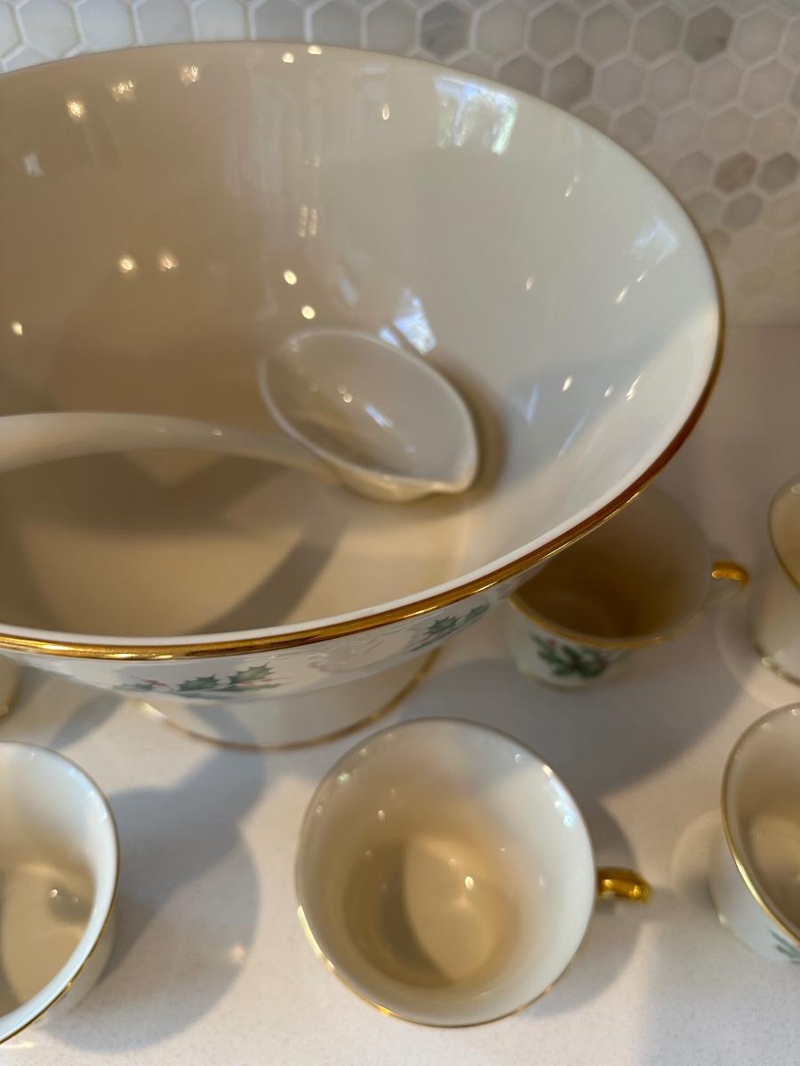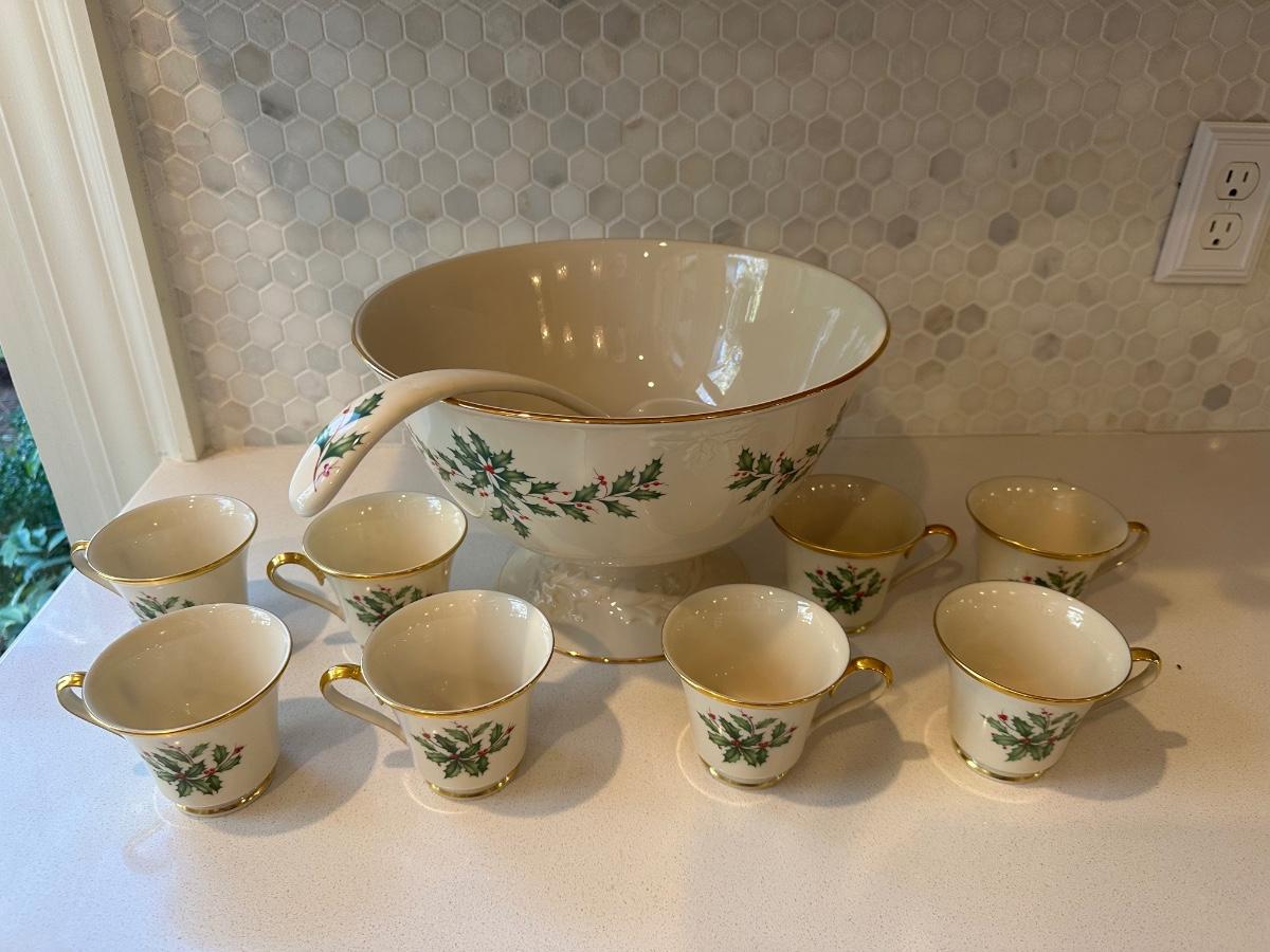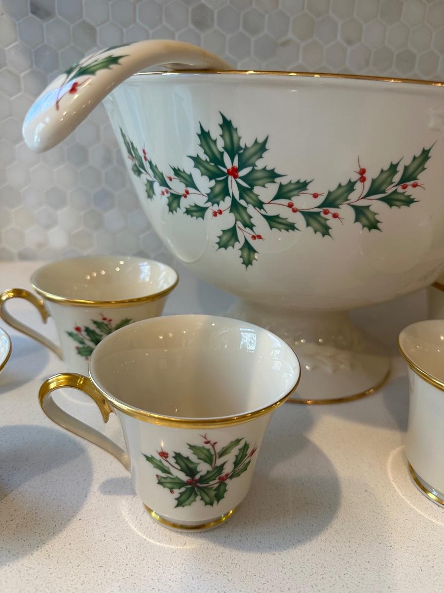 LENOX HOLIDAY PUNCH BOWL, LADLE, 8 CUPS