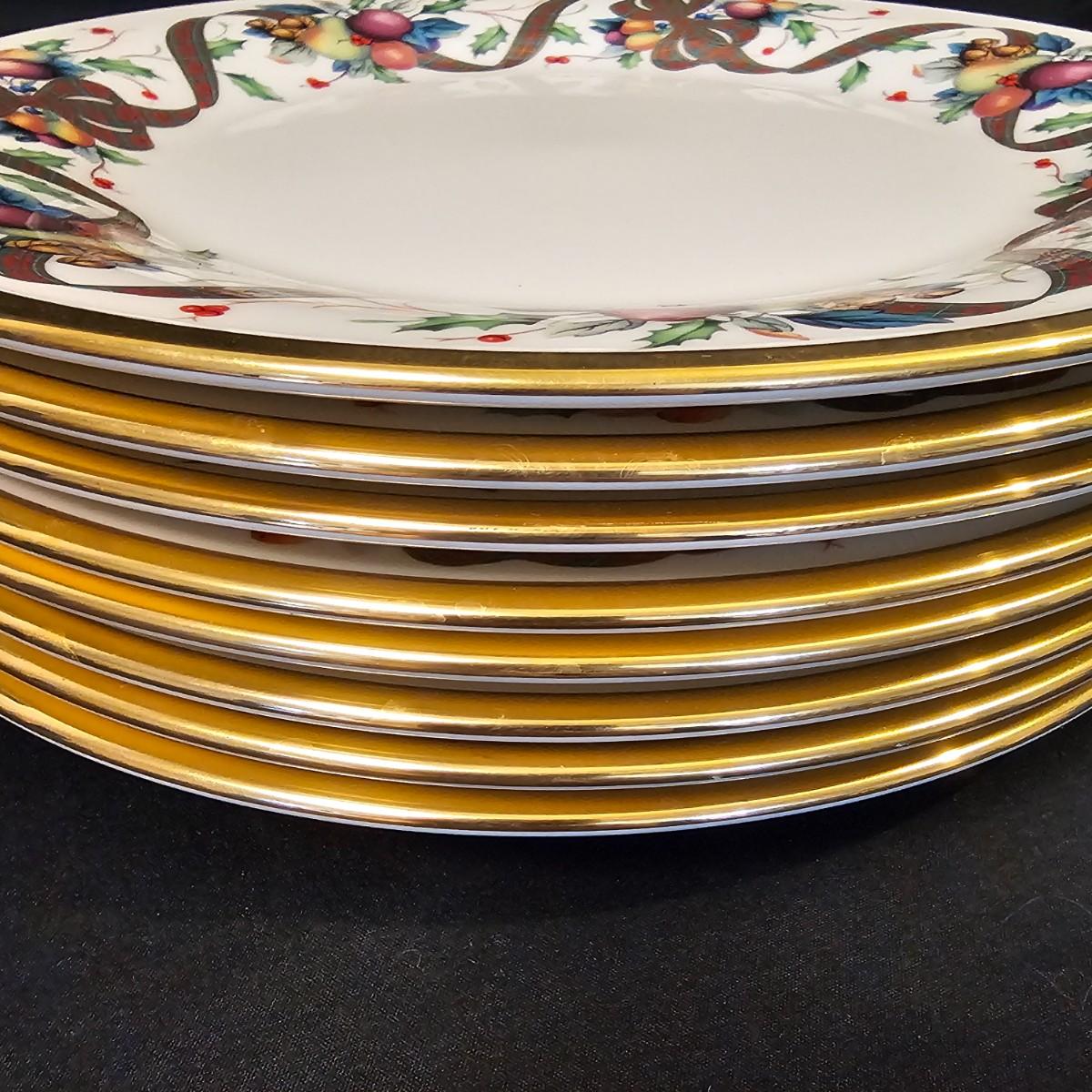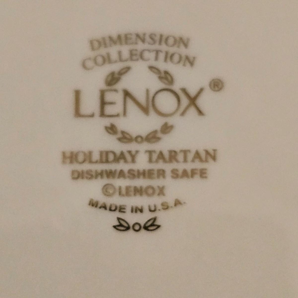 Eight beautiful Lenox dinner plates in the Holiday Tartan pattern. Each plate is gold rimmed, measures 10.75"D. See photos for details. Shipping available.