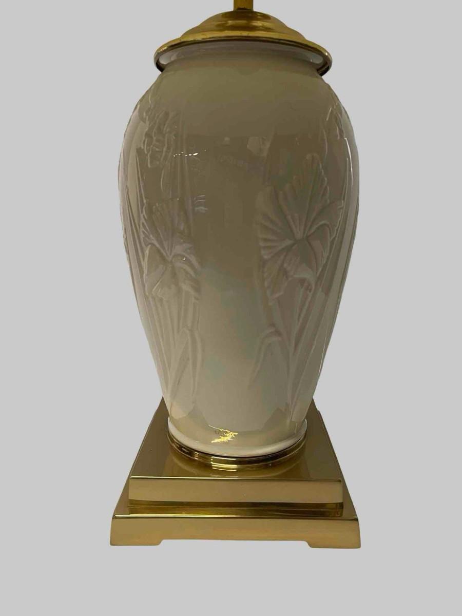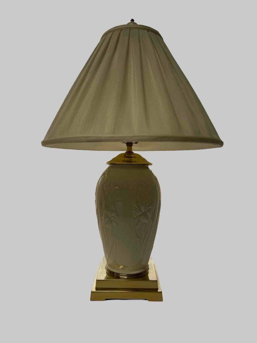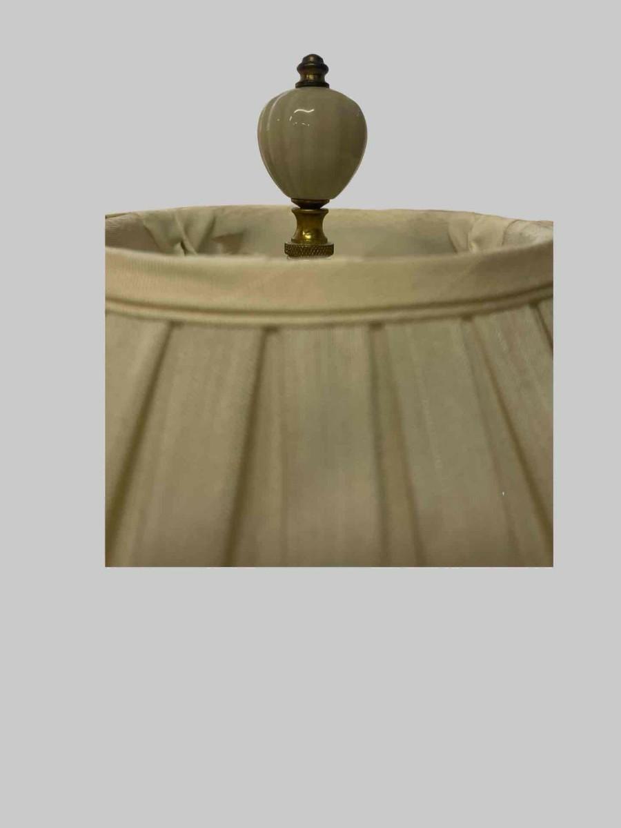Lenox Ivory Porcelain Table Lamp. Includes original shade but shade has a lot of damage on the inside not visible from the outside.