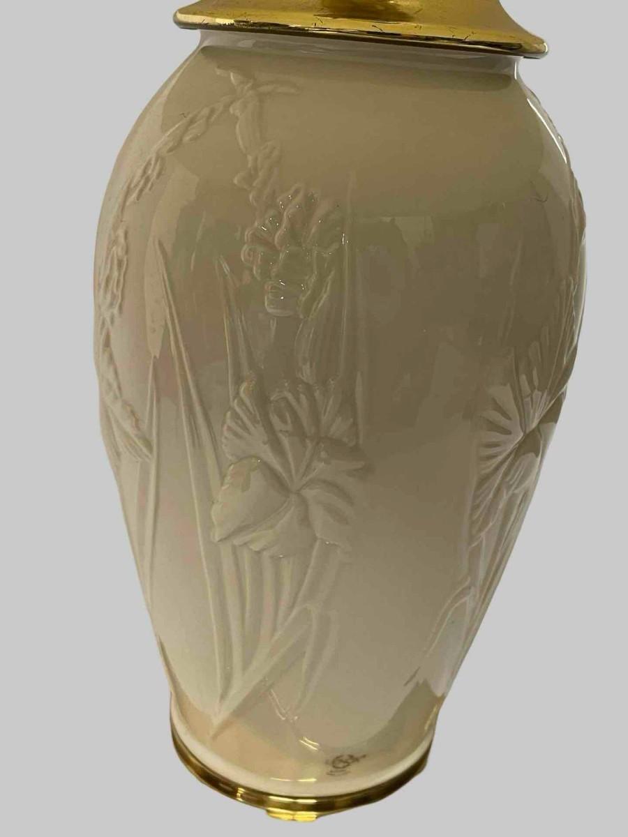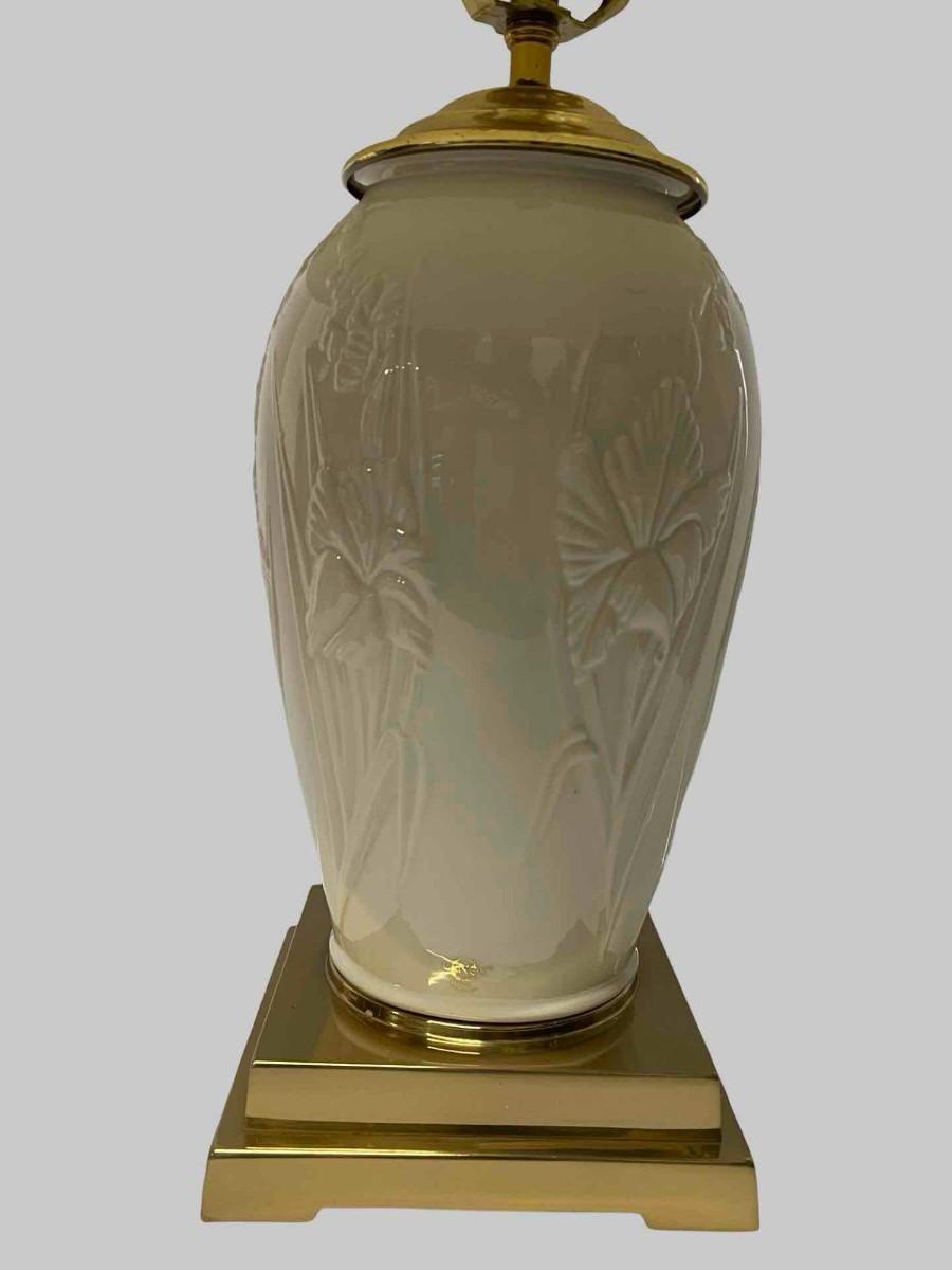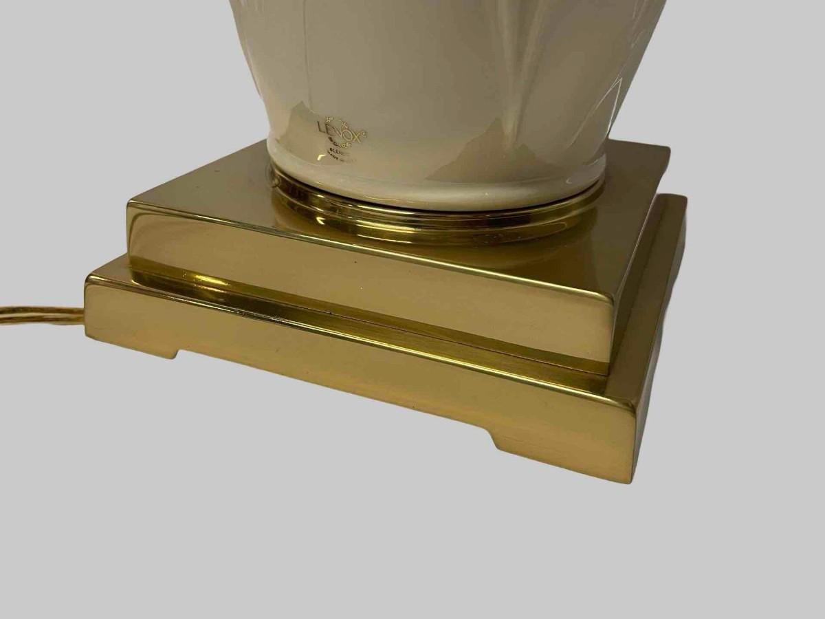 Lenox Ivory Porcelain Table Lamp. Includes original shade but shade has a lot of damage on the inside not visible from the outside.