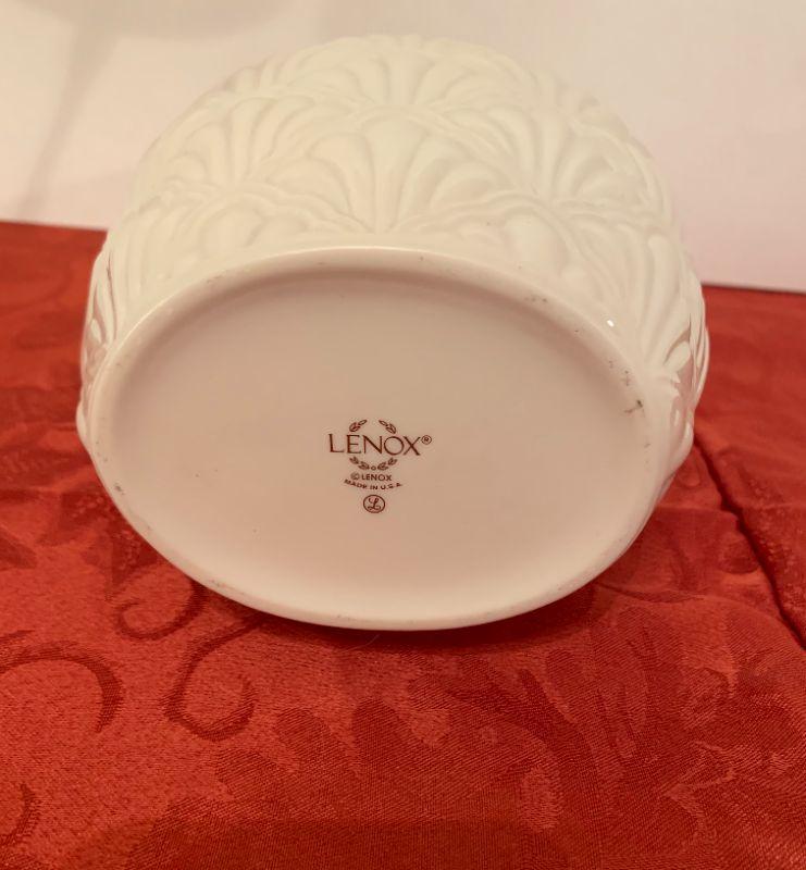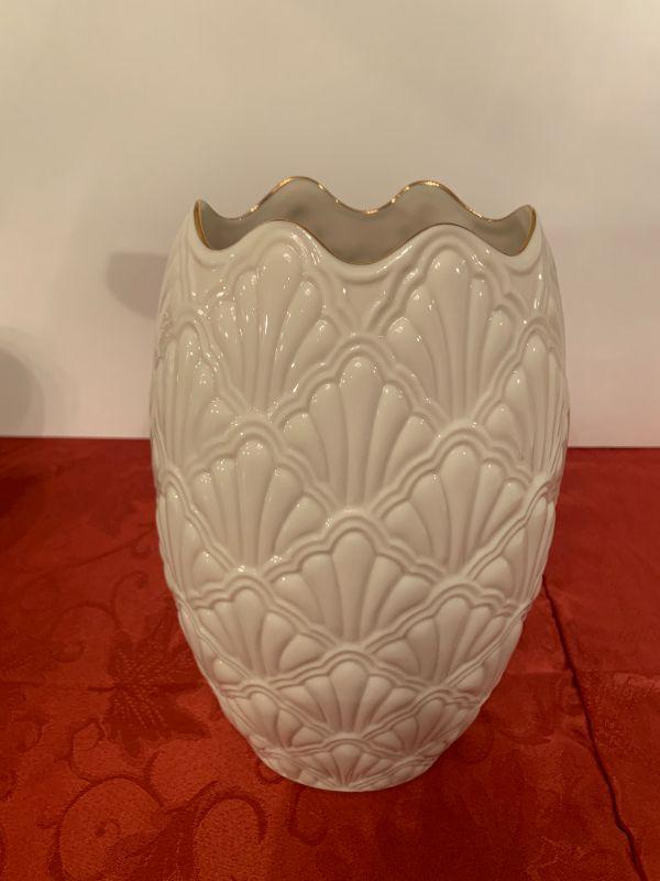 Lenox - 10"Hx7"W ivory Jacquard Collection seashell vase with gold trim. In excellent condition. made in USA