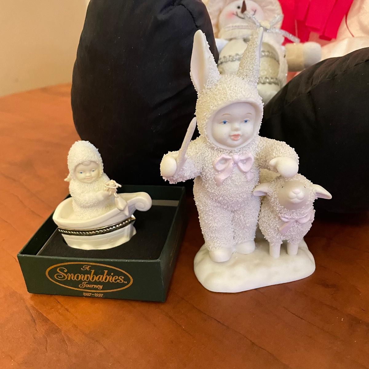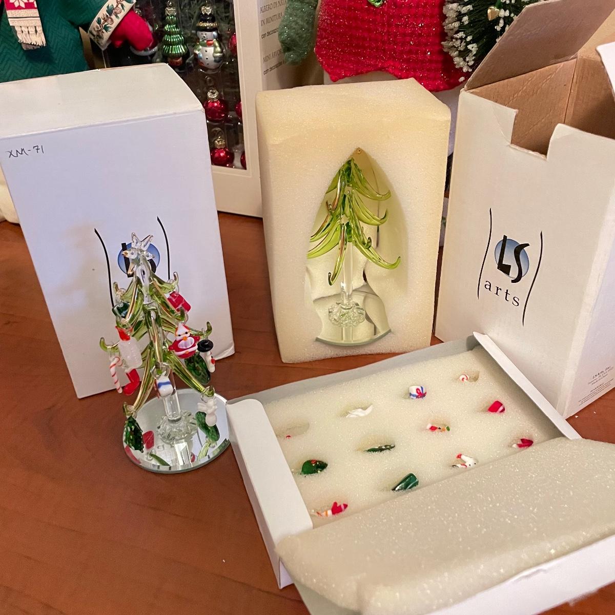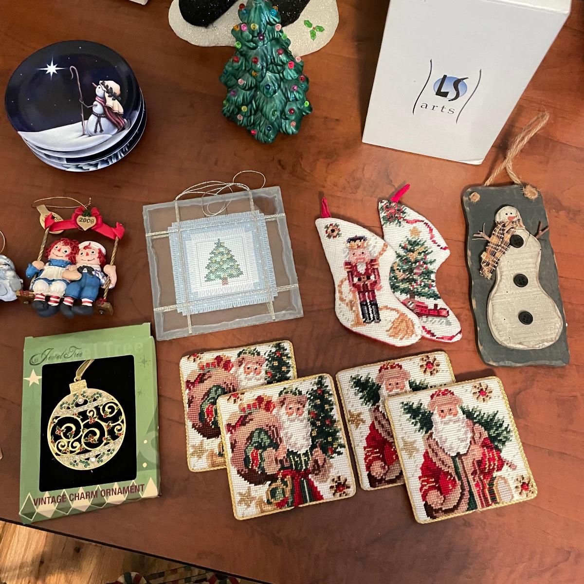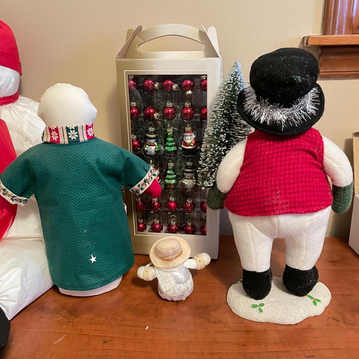 This lot includes two wonderful nativities: Jim Shore and Lenox. Lot also includes two delicate crystal trees with twelve crystal ornaments each by LS Arts, two Snow Babies, a sturdy metal candle holder featuring Santa’s Sleigh. Coasters, dishes, ornaments and snowmen! The Mini Xmas Tree box is 15” tall, the large plush snowman can extend to 36”. Local pick up only.