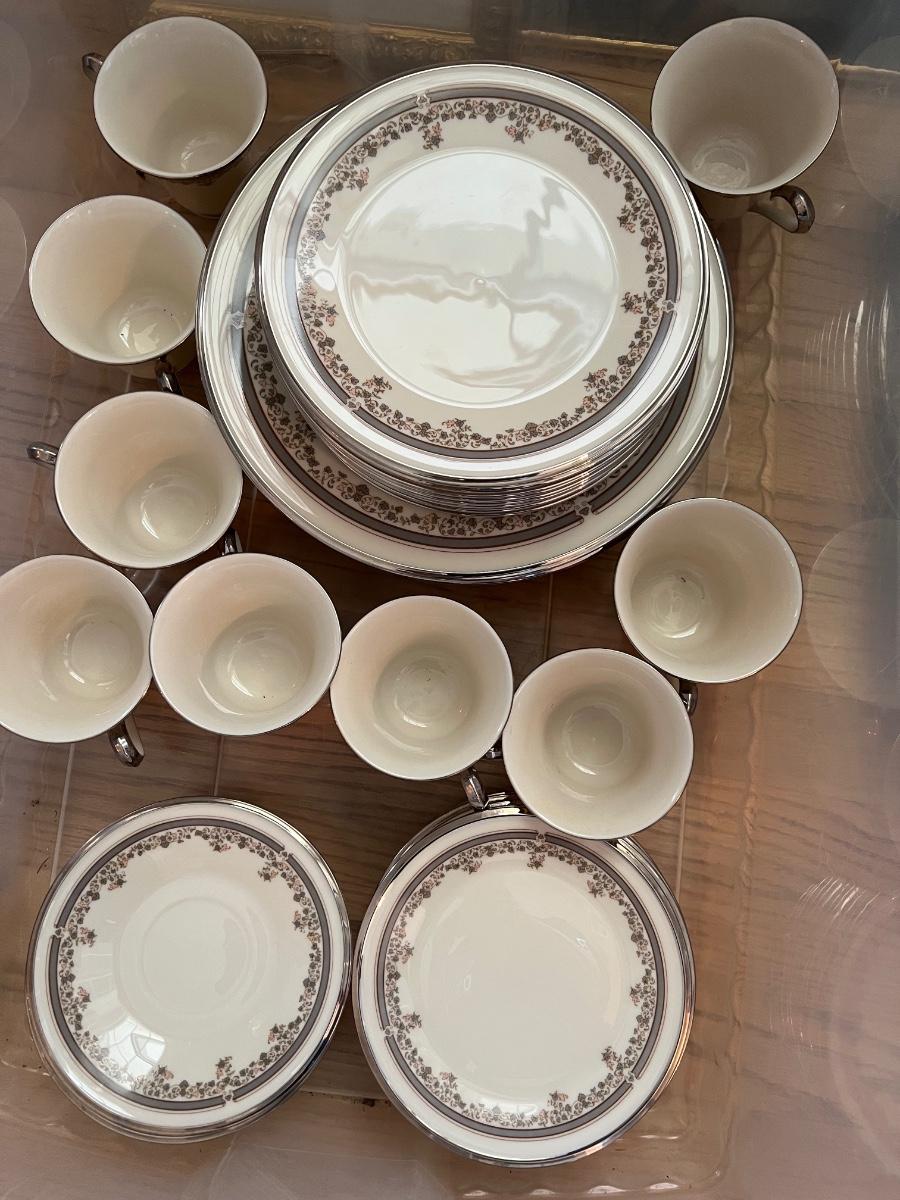Lenox Lace Point China (4 sets of 9 assorted size plates, 9 tea cups)