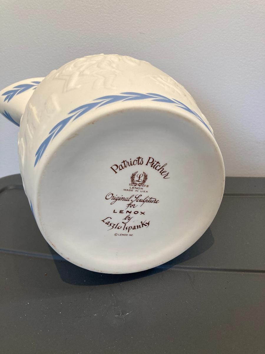 Lenox LAZLO ISPANKY Sculpture Porcelain Patriots Pitcher. 8.5”h