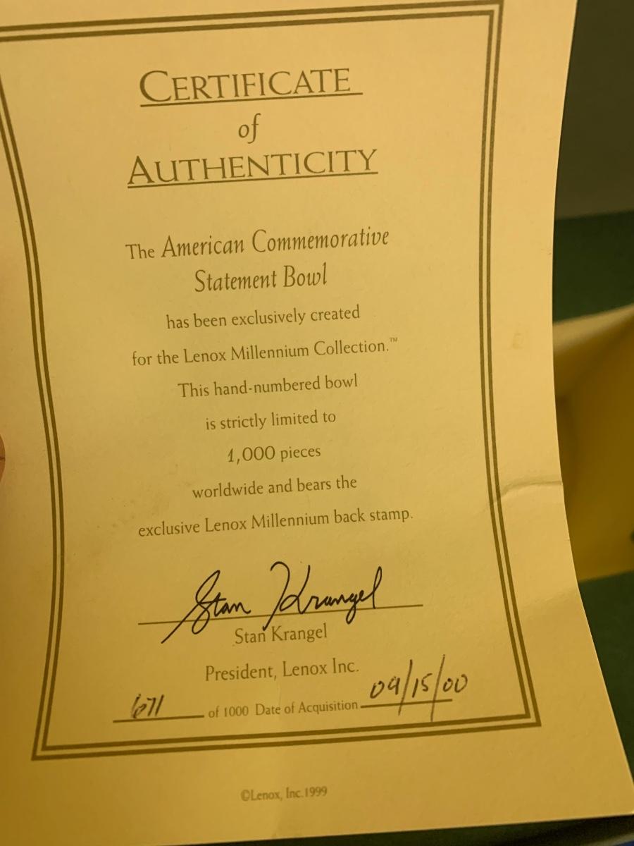 Lenox Millennial Large Decorative Bowl Mint In Original Box w/ Cert of Authenticity 1/1000